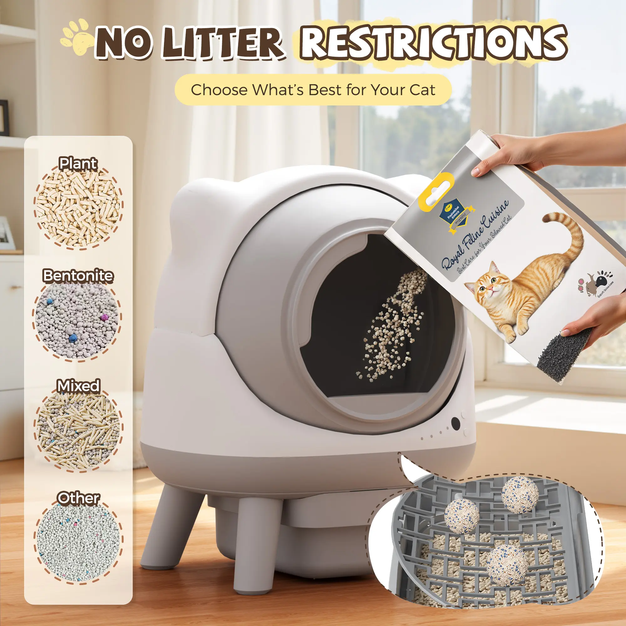 This is one of the best purchases I’ve made for my cat. The design is super sleek and modern, and my cat got used to it right away. The automatic cleaning function works great—no more daily scooping, and there’s way less odor in the room.