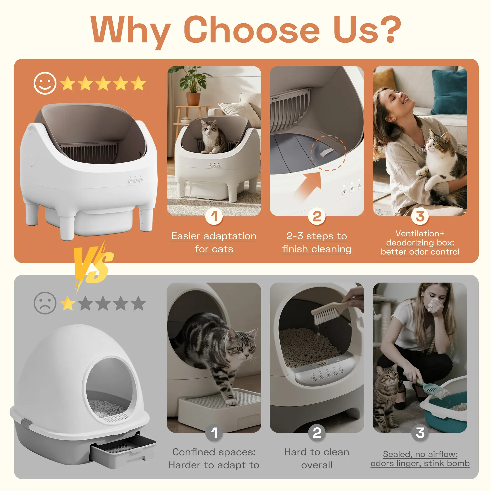 ·Smart Remote Management: Connect to 2.4GHz WiFi for full app control. Monitor litter box activity, track cleaning cycles, and view your cat’s weight trends—all from your phone.