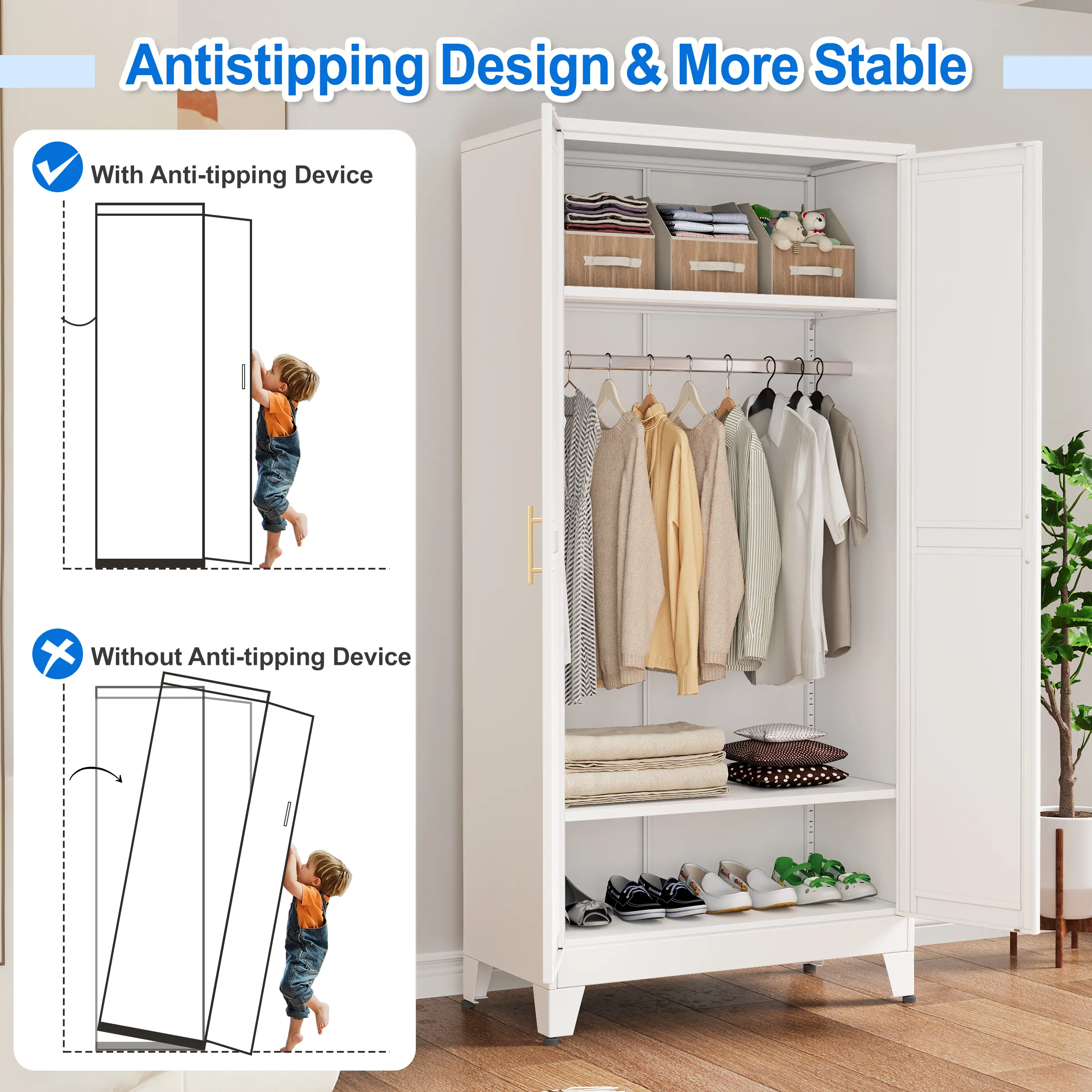 Multi-zone configuration accommodates clothing (suits/dresses), appliances, and bathroom essentials. Scratch-resistant finish withstands garage/laundryroom use. Modular assembly with video guide (2-person 45min install). Certified for residential/commercial applications: bedrooms, offices, kitchens, retail spaces. Includes 5-year structural warranty.