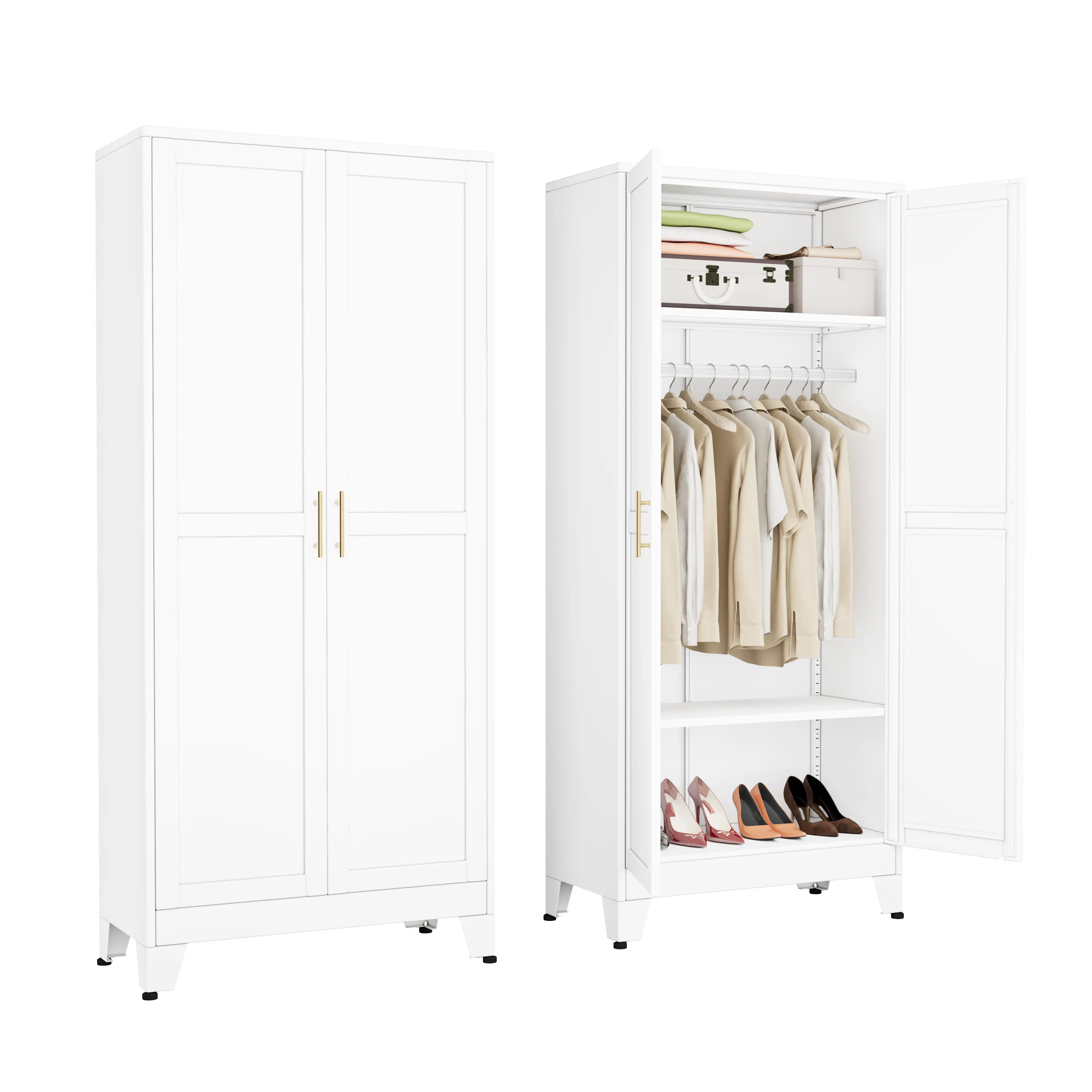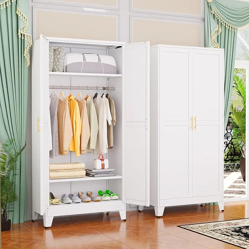 Metal Wardrobe Cabinet with Hanging Rod, 71" Metal Clothing Storage Cabinets with 2 Doors and Adjustable Shelves, White Armoire Wardrobe Closet for Bedroom, Laundry Room, Cloak Room mothersdaygift