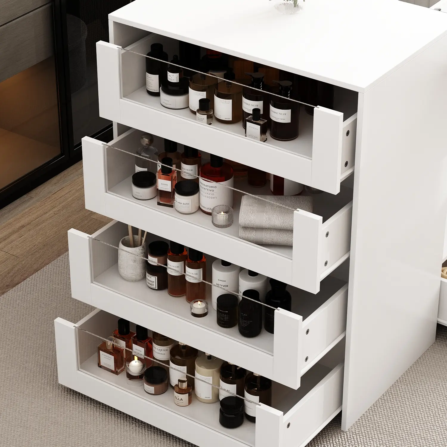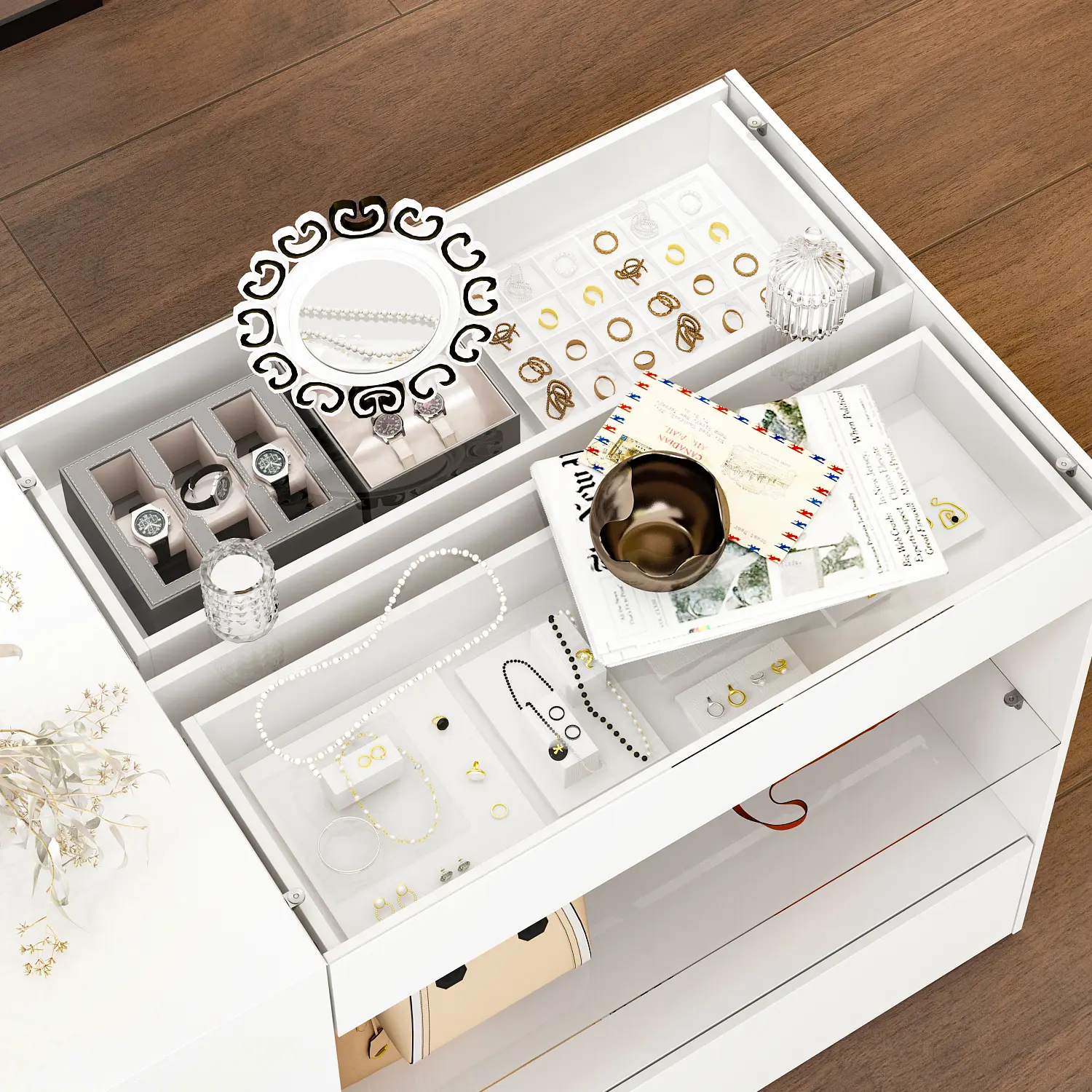I can’t began to say how much I love this accessory dresser ….100/10, highly recommend! It truly elevates your closet space, and makes you feel super elegant, graceful & well organized!! FYI the bottom drawers work better on non carpeted flooring !