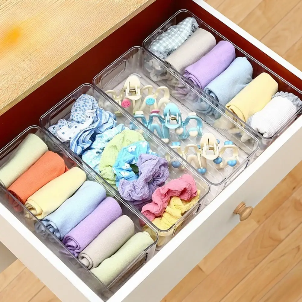 Wardrobe long rectangular transparent storage box, household clothes, socks, and underwear organizer, drawer divider, classification storage