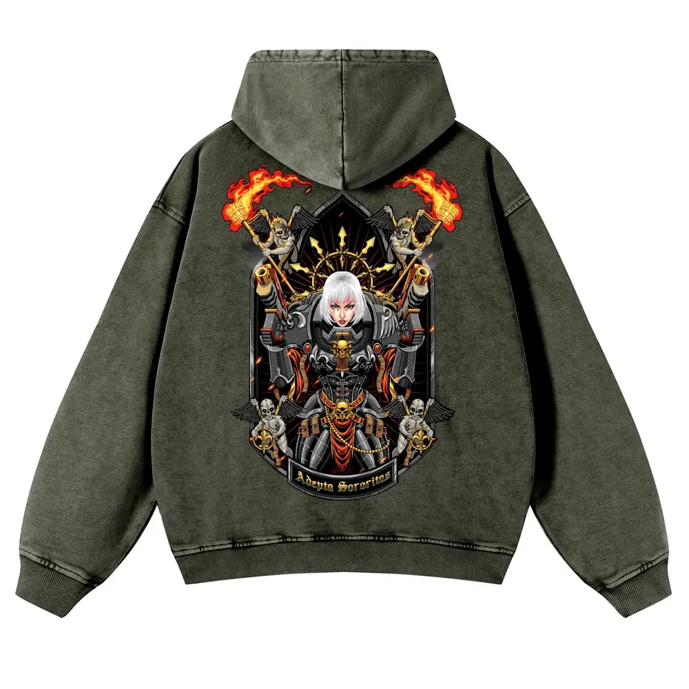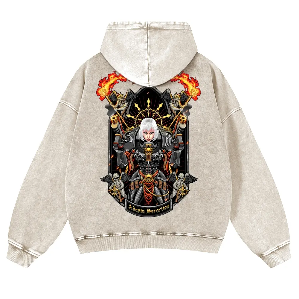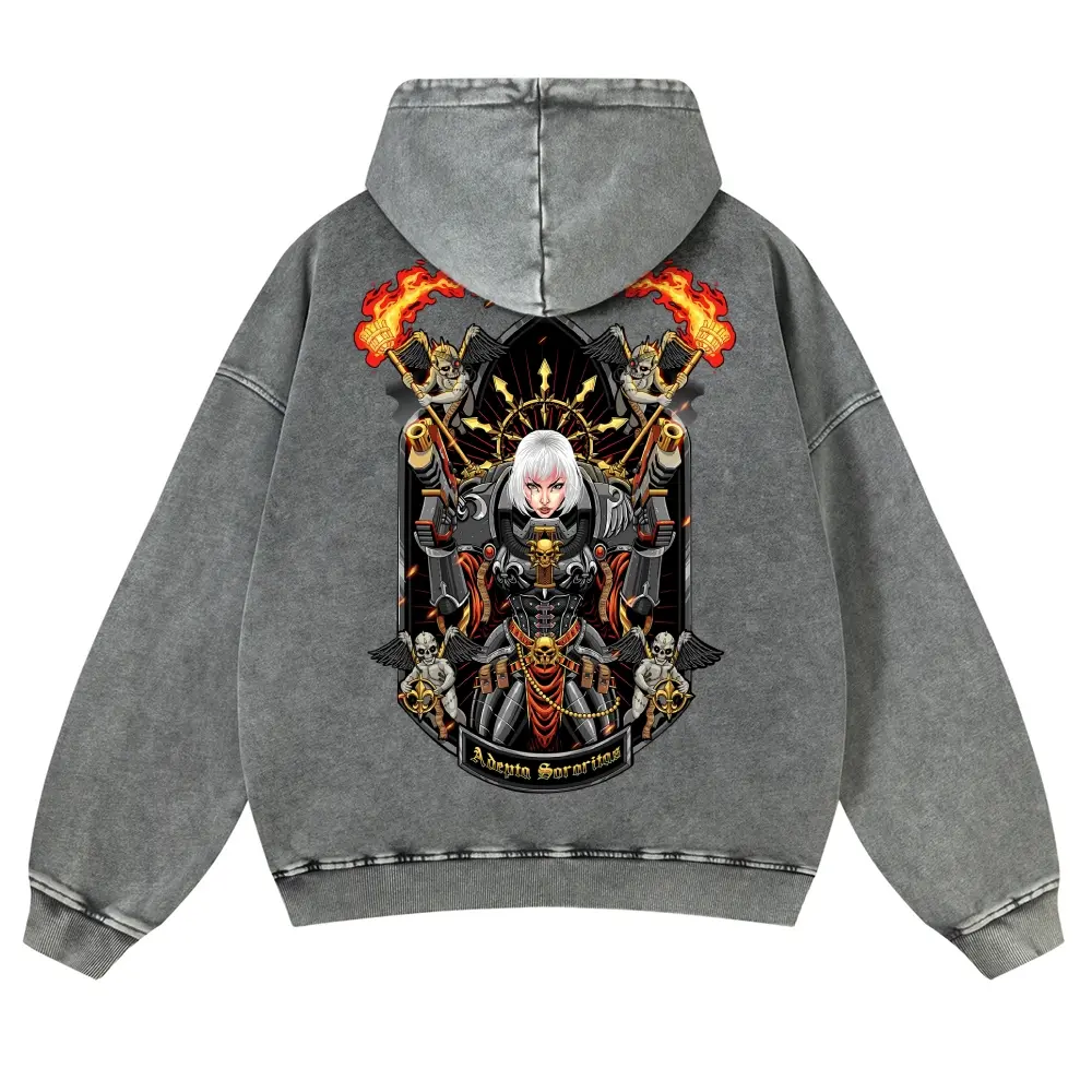 Men's 380G Washed Warhammer 40k Graphic Hoodies, Soft Fabric Casual Tops, Unisex 80s-90s Streetwear, Anime Game Themed, Cotton, Funny Menswear Gifts