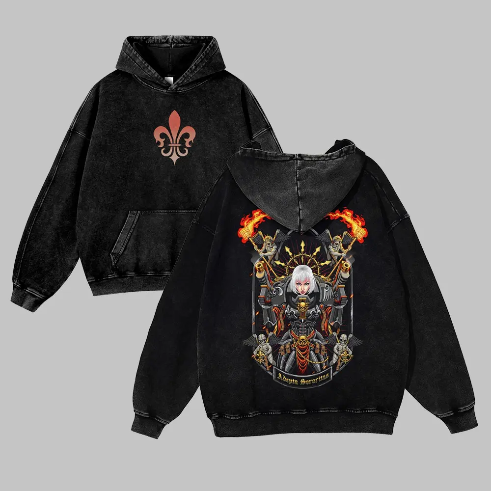 5. Men's 380G Washed Warhammer 40k Graphic Hoodies, Soft Fabric Casual Tops, Unisex 80s-90s Streetwear, Anime Game Themed, Cotton, Funny Menswear Gifts