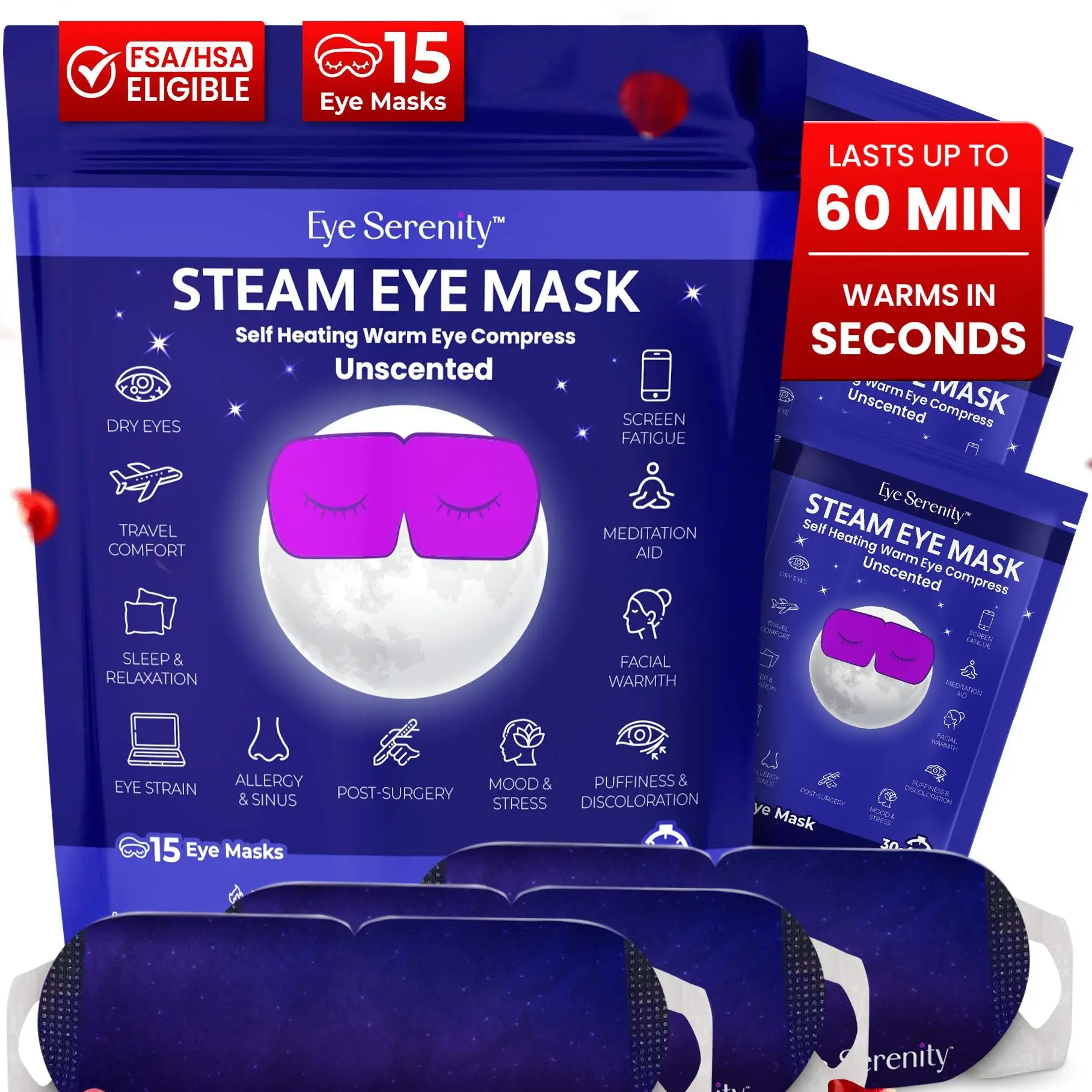 MANY WAYS TO ENJOY: Individually packed single-use Eye Serenity masks. It's like a spa day for your eyes, anytime, anywhere! Home, office, travel - pop it on and feel the ahhh. Ideal for corporate gifts, wellness spas, meditation retreats, bridal showers, and holiday presents.