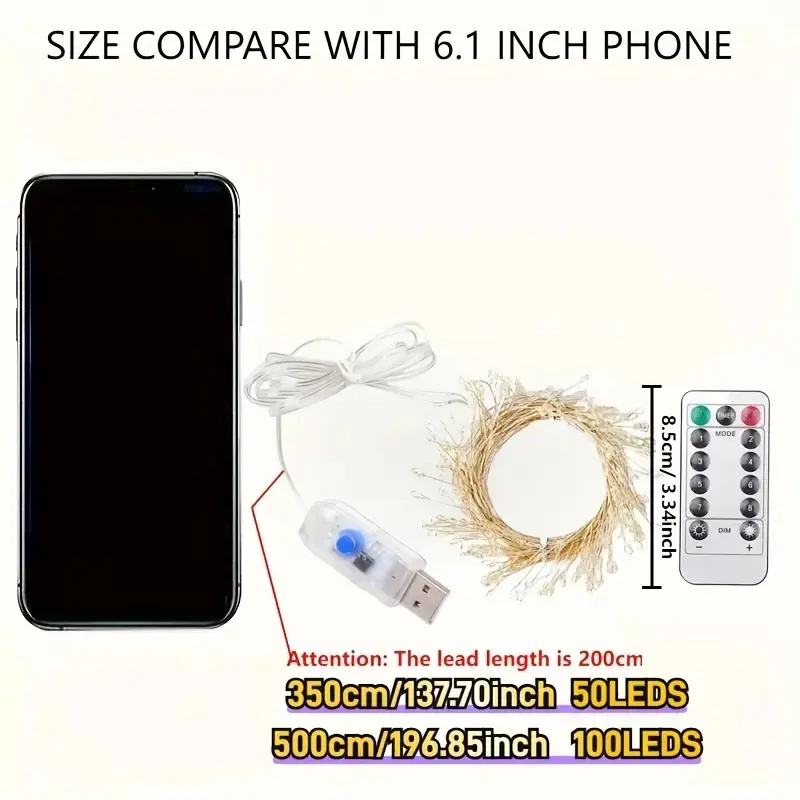 Warm White Light 100led/50led Firework String Lights, USB Powered Copper Wire, Indoor Decorative Party Christmas Tree Thanksgiving Decorations