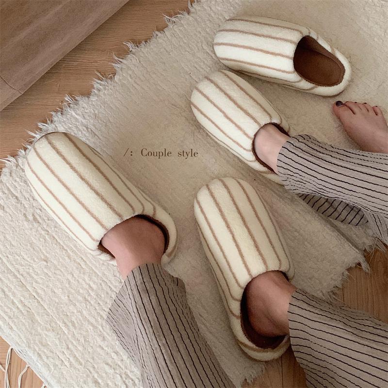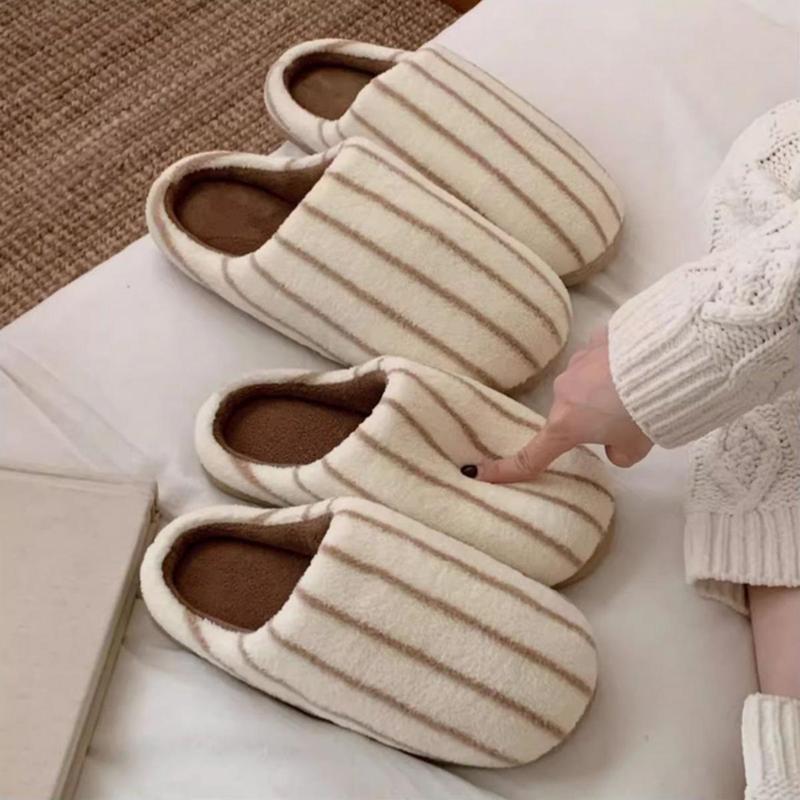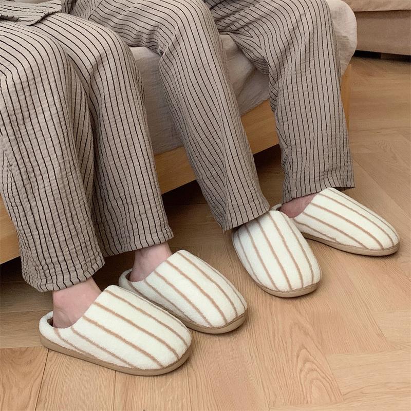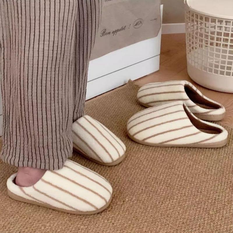 Warm Memory Foam Comfy House Slippers with Anti-Skid Rubber Sole for Indoor & Outdoor Use for Women Men Striped Design