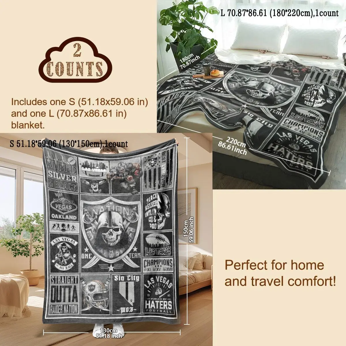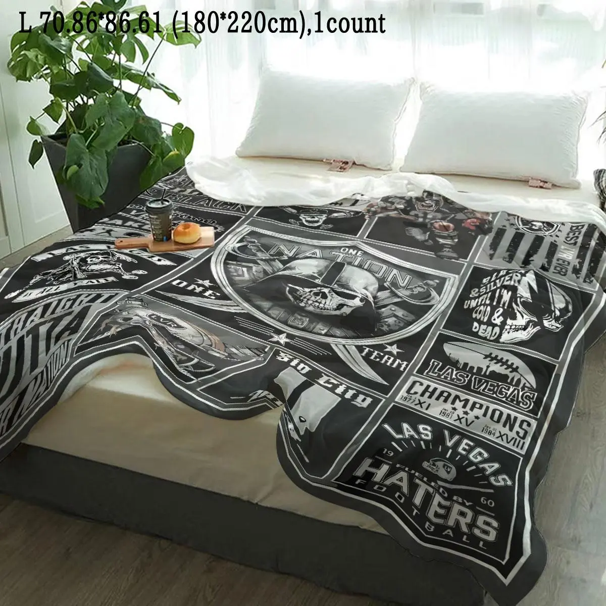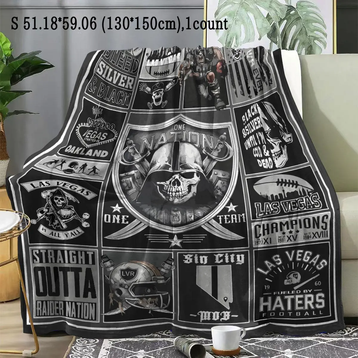 Oakland Raiders Pattern Slogan Print Blanket, Soft Comfortable Throw Blanket, Warm Napping Blanket for Home Office Travel Camping