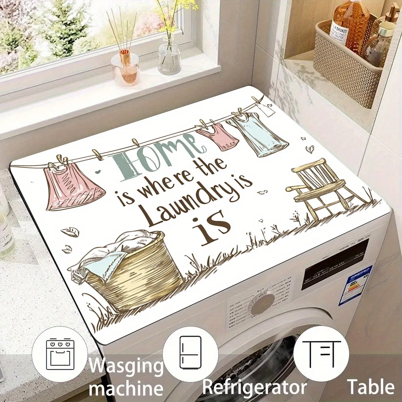 Non-Slip Base: The non-slip diatomite base of washer dryer covers provides a firm grip between the mat and the tabletop, further providing stable control, preventing your detergents slipping away from washer vibrations.