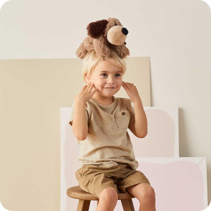 Fetch some comfort with Brown Dog Warmies! This flat, belly-down pup warms in the microwave for soothing relief, is gently weighted to ease stress and lavender-scented for relaxation.
