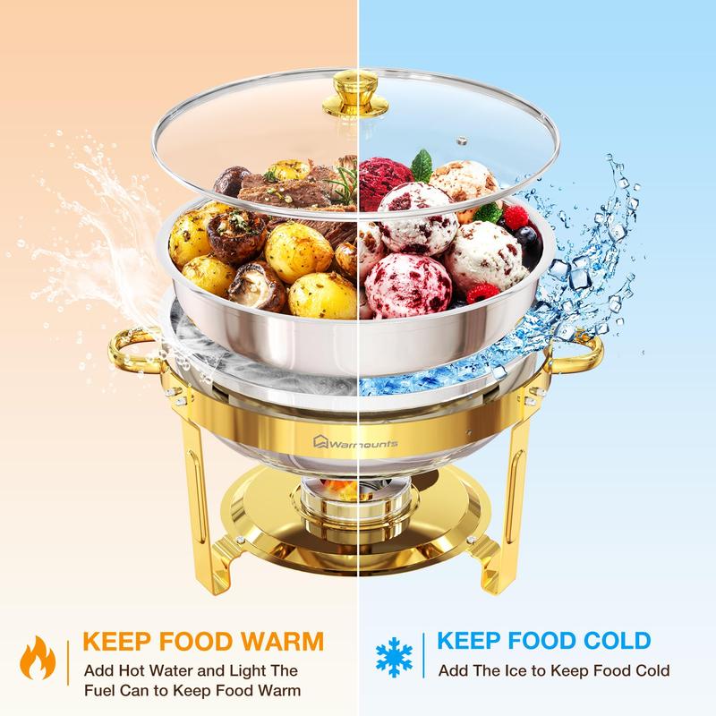 Space-Saving Stackable Design- Innovative stackable design allows multiple gold chafing dishes to nest neatly together, saving up to 70% of storage space—ideal for keeping your kitchen or storage area organized and clutter-free
