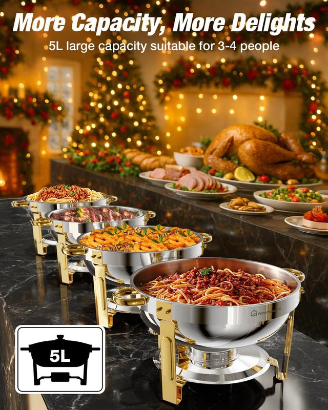 ·STACKABLE FOR EASY STORAGE – Designed to nest neatly, these gold chafers and buffet warmers sets save space in your kitchen or catering area. Keep sets organized, accessible, and ready for your next event without clutter