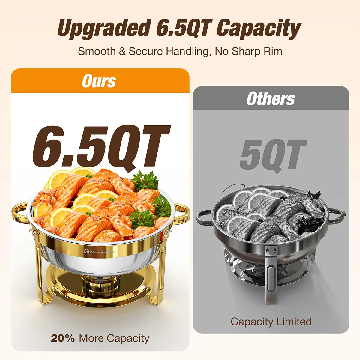 Hosting a big celebration or a cozy family dinner? Now you can serve even more—without adding extra units. Meet the upgraded 6.5QT WARMOUNTS Chafing Dish: same premium build, now with 20% more capacity.