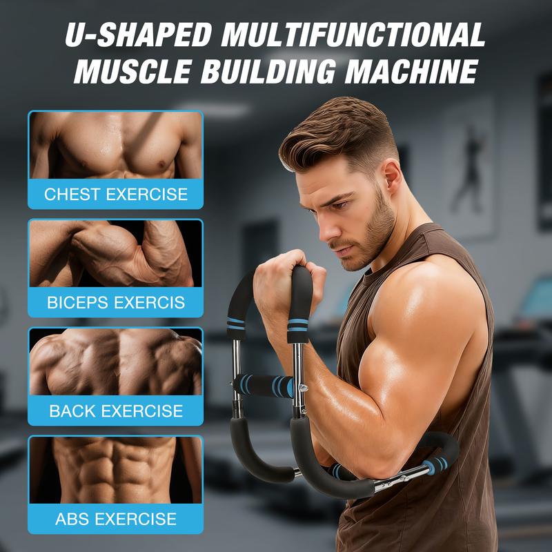 ·U-Shape Design for Full-Body Muscle ActivationUnlike traditional straight-grip trainers, our innovative U-shaped chest workout equipment engages over 10 muscle groups simultaneously—from chest (pectorals), arms (biceps/triceps), and shoulders (deltoids) to back, core, and even legs. Maximize efficiency by targeting multiple zones in one fluid motion.
