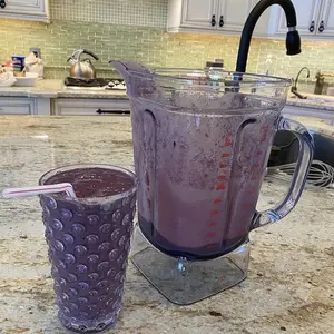 My perfect recipe for Sun Warrior is to add one cup frozen mixed berries, 4 ice cubes, a slice of frozen avocado, cover that with cold almond milk and one cup cold water.