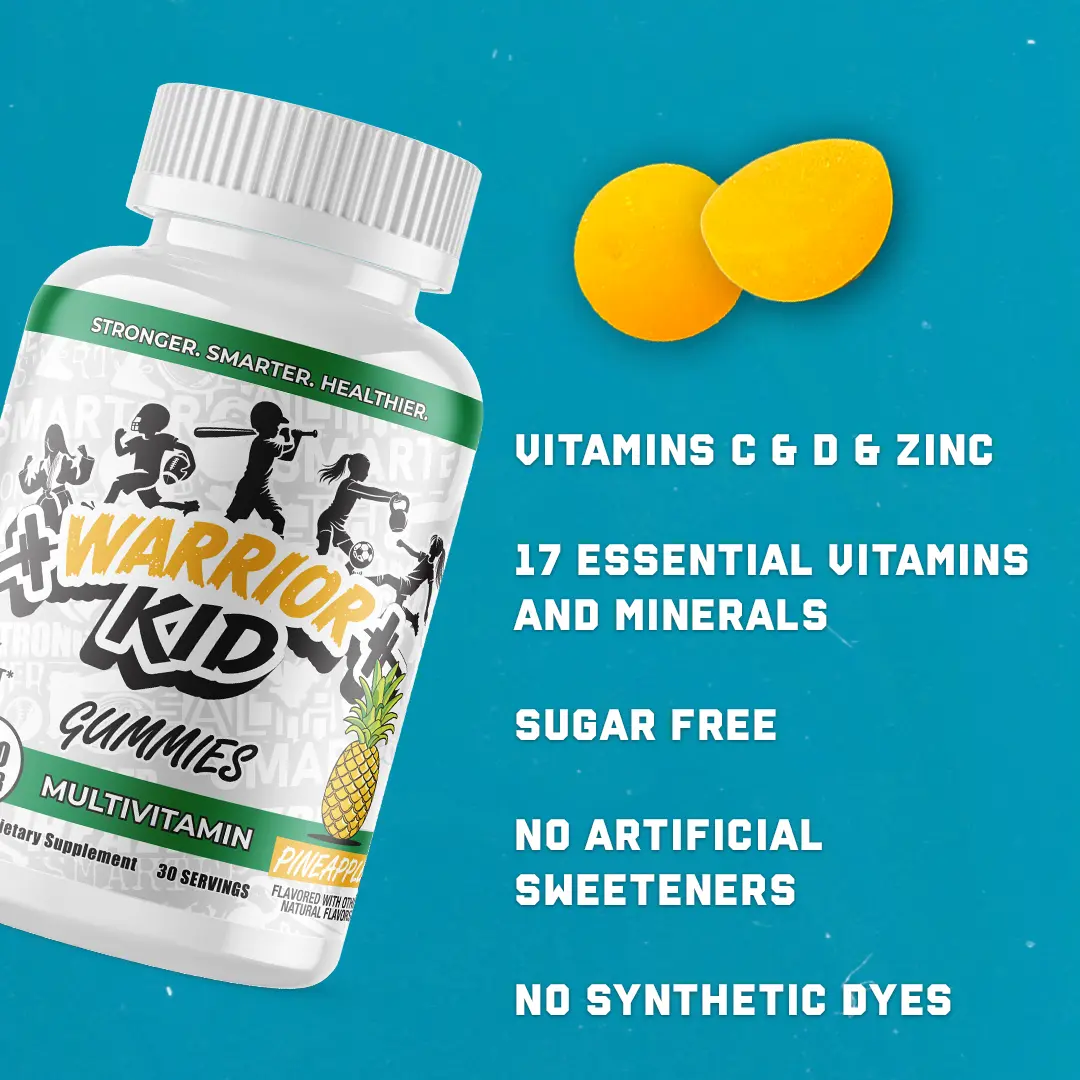 Kids donât always eat perfectly, and they shouldnât have to. Warrior Kid Multivitamin Gummies fill key nutritional gaps with science-backed doses of essential vitamins and minerals. No sugar. No artificial garbage. Just what they need to grow strong, healthy, and resilient.