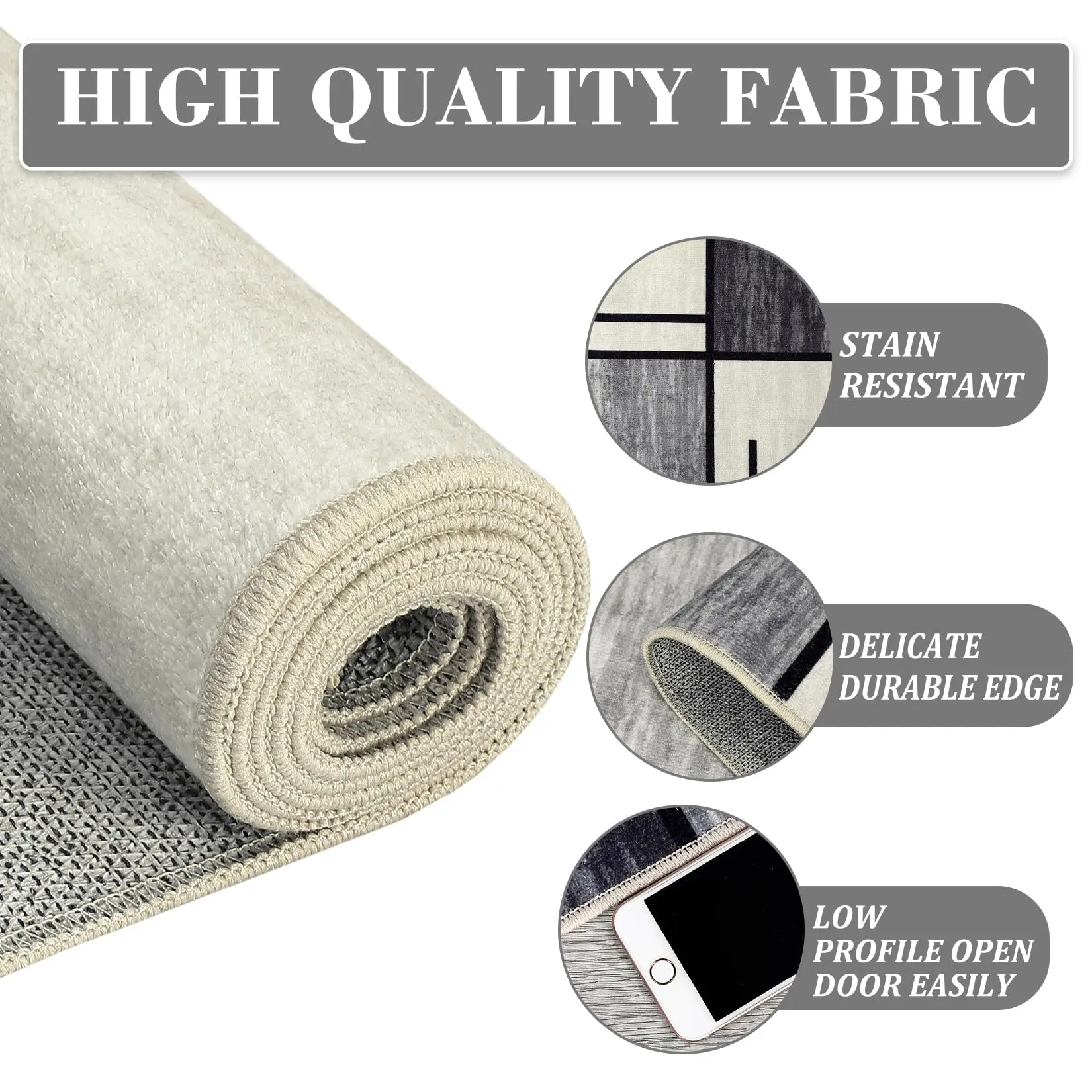 Our washable rugs use a high-density serging edge, sturdy and durable construction can make area rugs last for years.