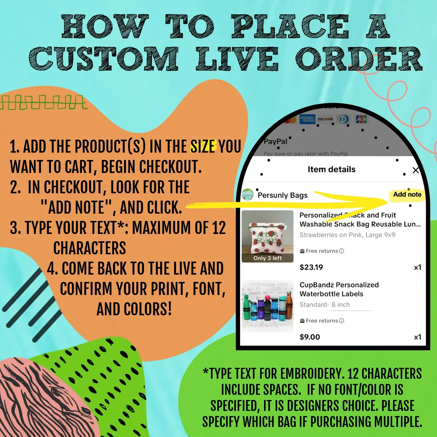 *** Please add your desired text UP TO 12 CHARACTERS for this small bag, desired font, and color for text in the note at checkout. We cannot fill your order without this information. If you need any help please message us through the app.***