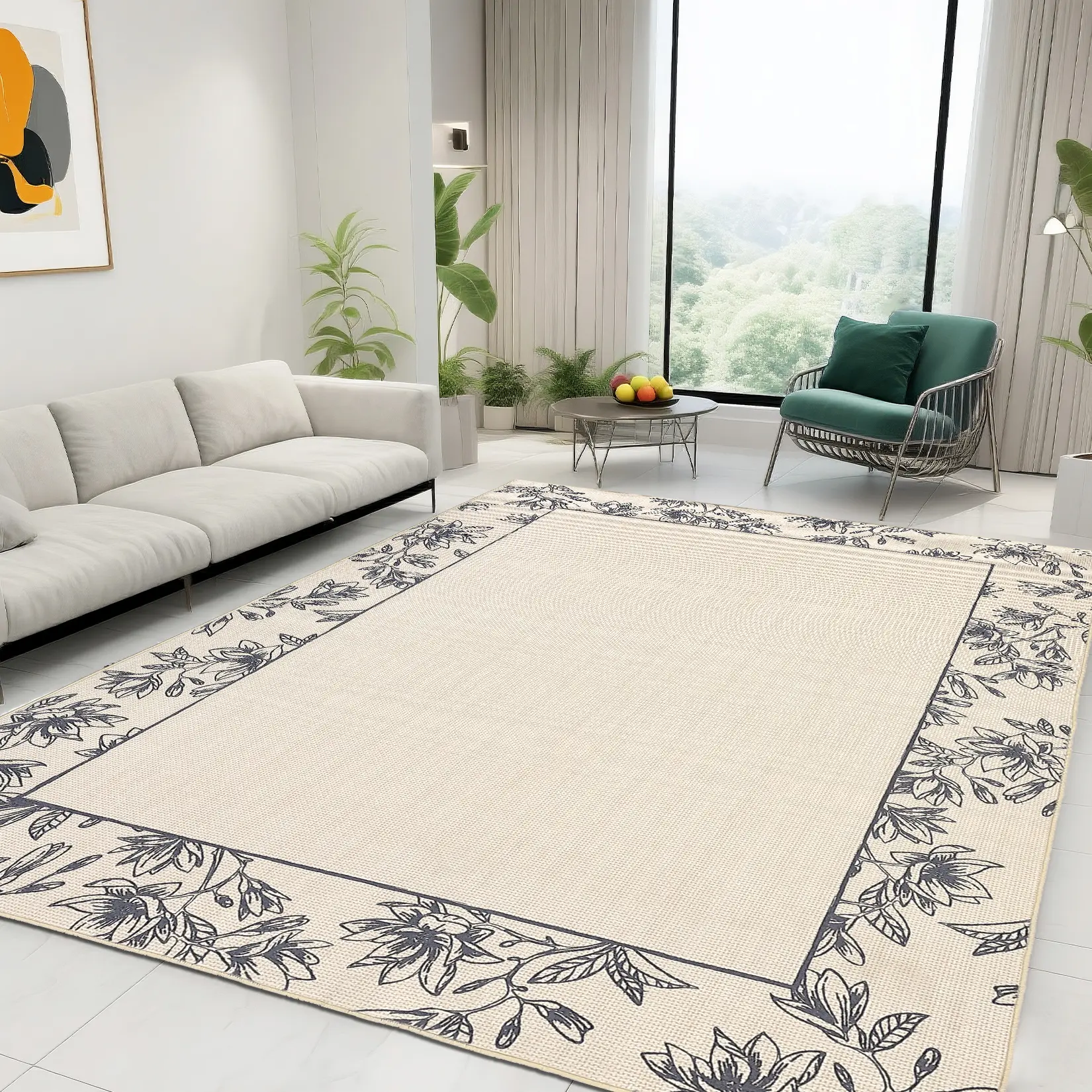Washable Foldable Printed Rug, Modern Linen Border, Suits Many Domestic Spaces
