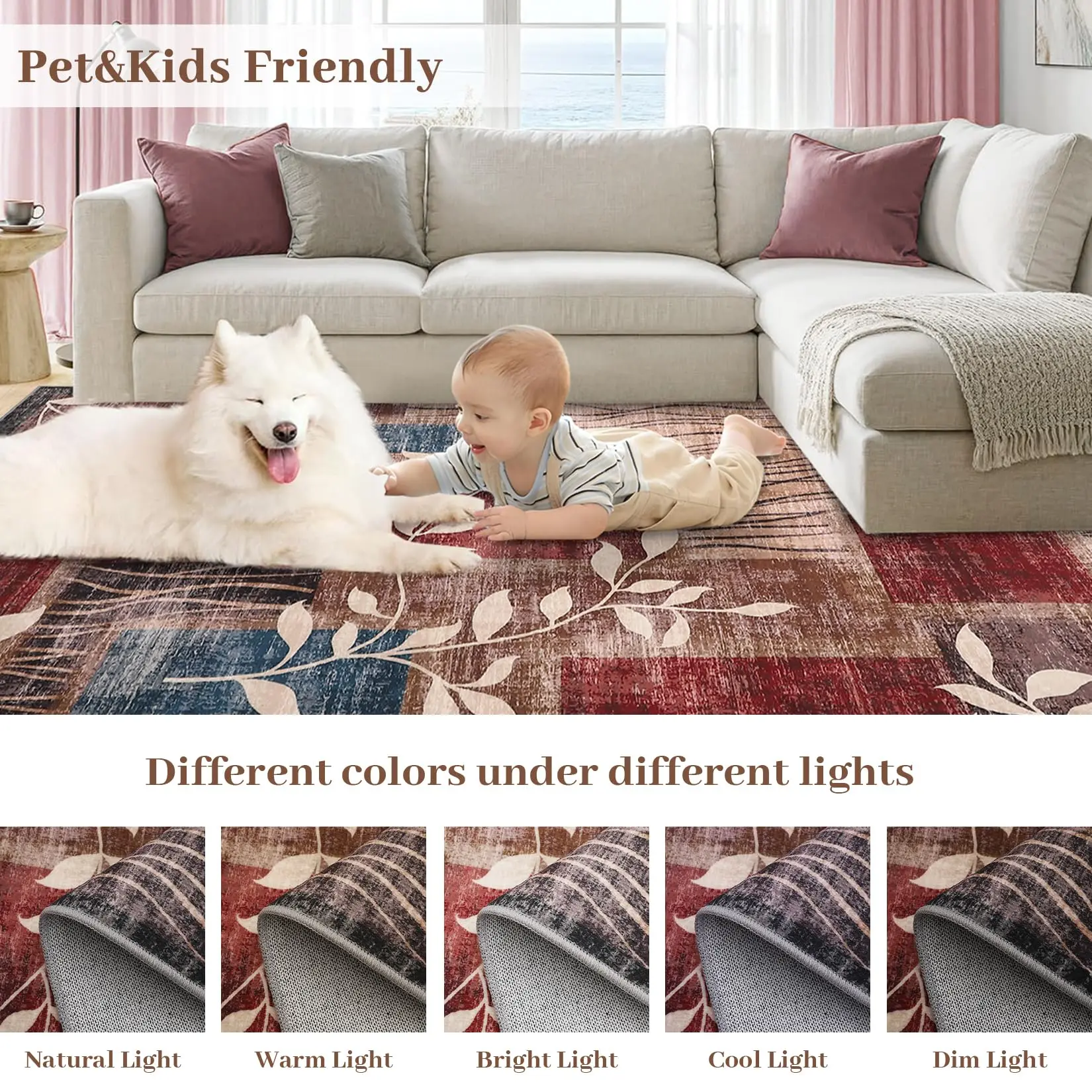 · ăMachine Washable Rugă- These area rugs are washing machine-safe, allowing for easy cleaning. Please try to hand wash or wipe clean the dirty parts with cold water and gentle detergent then air dry; This is the most convenient way with minimal efforts; If you want to use washing machine, please turn on gentle cycle with cold water and then air dry. Embrace the beauty and functionality of our washable printed area rugs, where style meets practicality