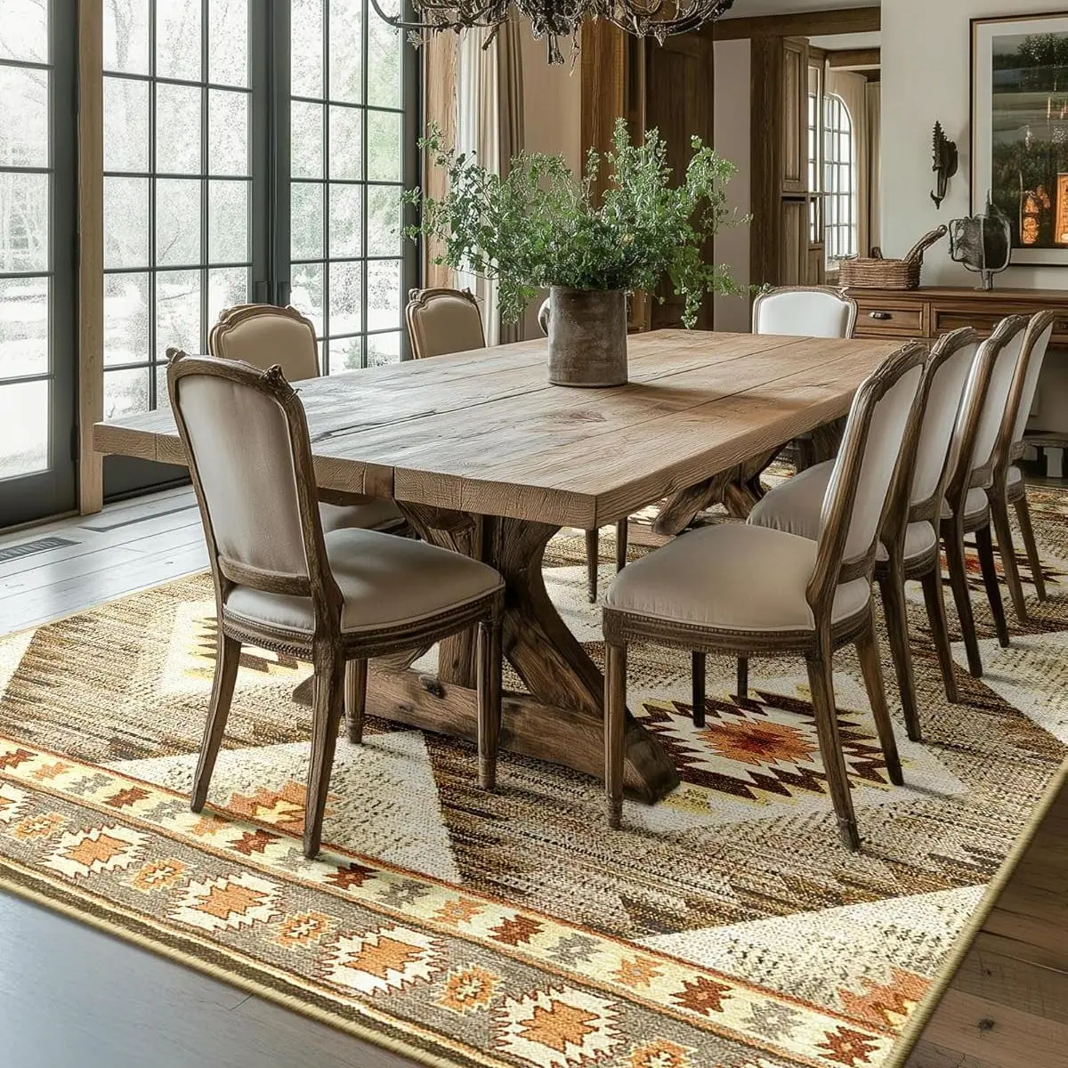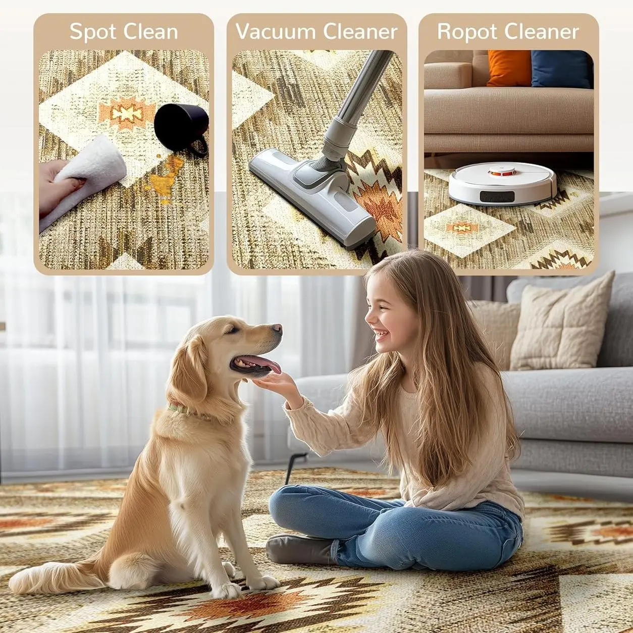 ·Water Repellent & Southwest Style :And this area rug print design, combines tribal and farmhouse element, and add a sense of vintage and artistic to your home. Available in a variety of colors and sizes, the rugs can meet different living spaces requirements. match for entrance, foyer, hallways, kitchen, living room, dining room and other high traffic area indoor. The Rug surface is Water Repellent, stain-resistant and easy to clean.