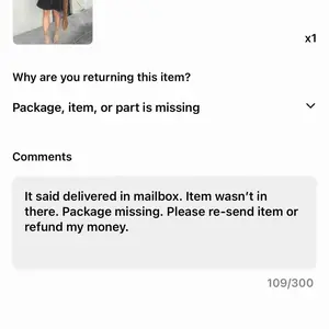 Never received my item. When o try the refund process it don’t allow you to push on the reason “missing item” to continue