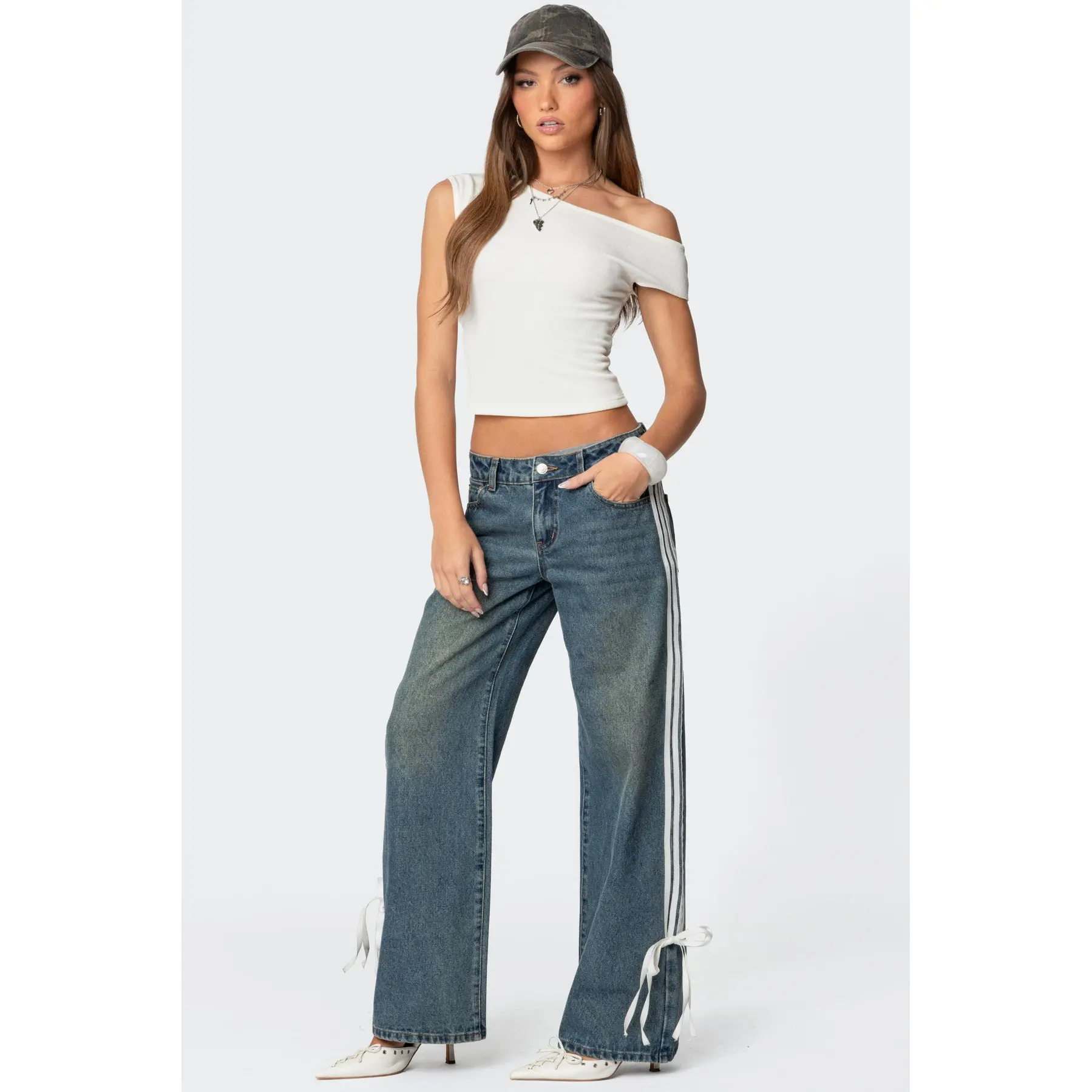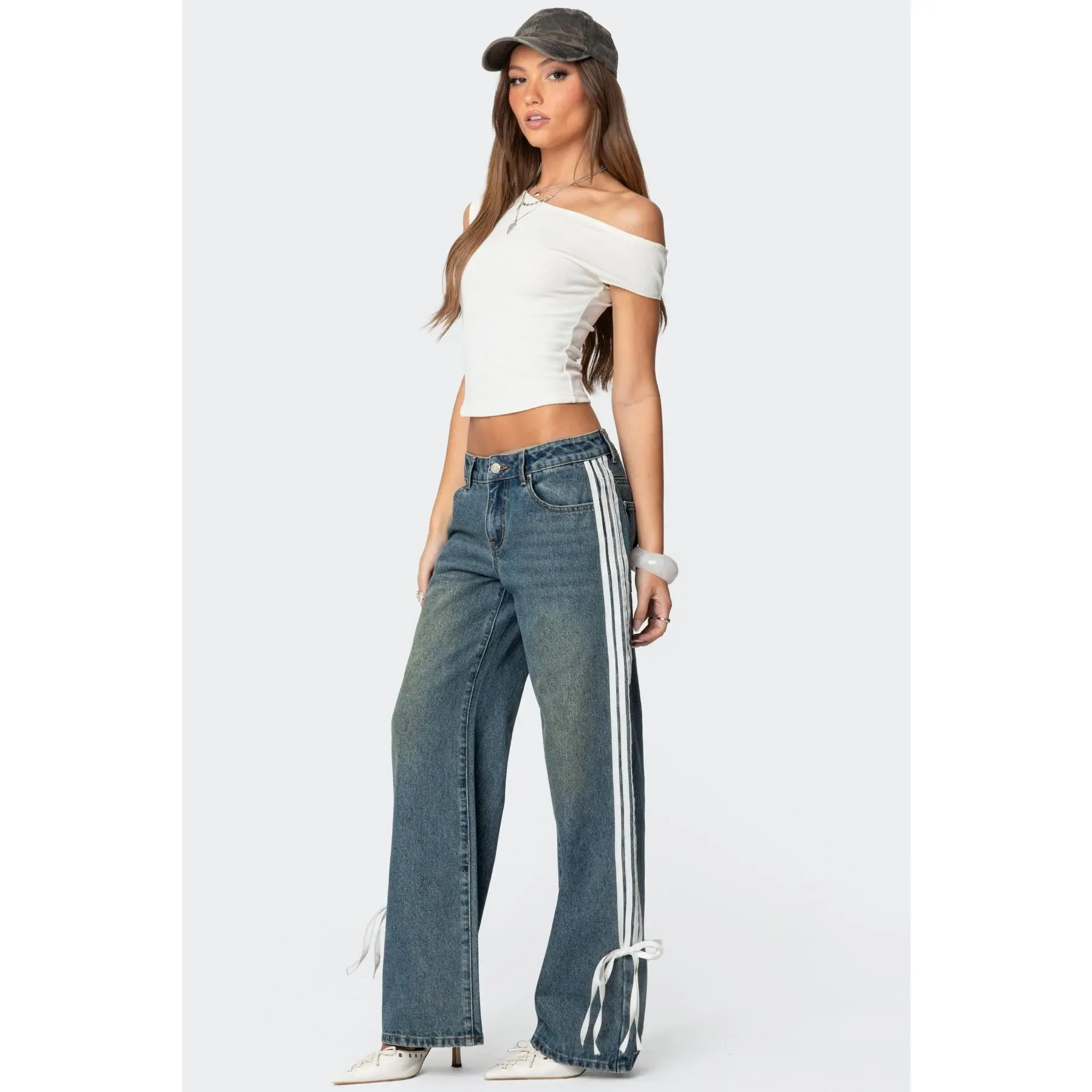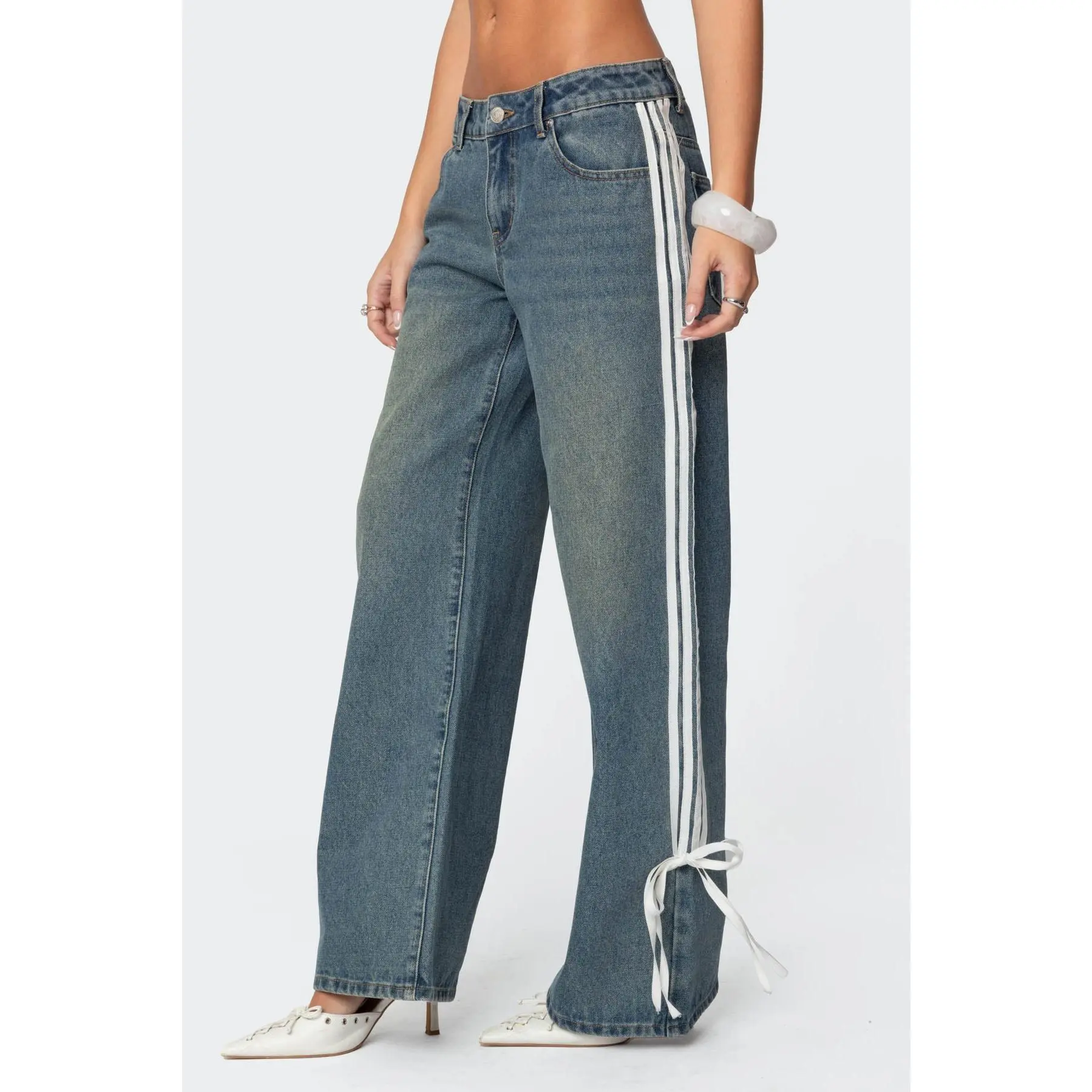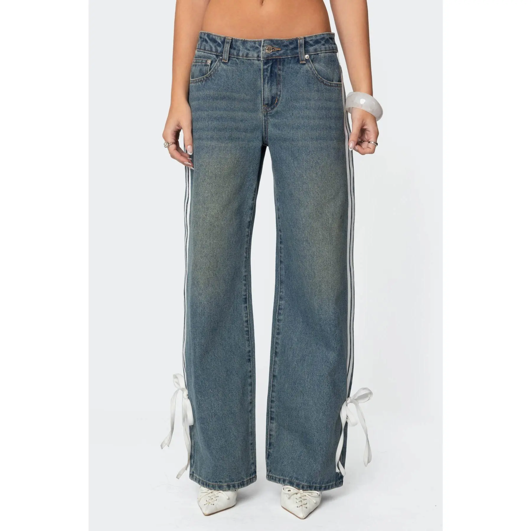 These jeans are SO CUTE!!!! They sit on my waist absolutely perfect however, when I sit down you can definitely see my underwear bc my waist is so tiny. (I wear a size 0 in jeans so I got the smallest size possible) I’m 5’3 and these do drag the floor on me a little, but they aren’t unbearably long!