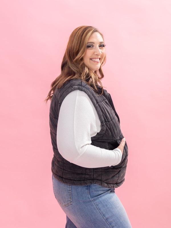 Soft washed quilted vest, the perfect layering piece #fallfashion #vest #layering #casualstyle #outfitinspo e