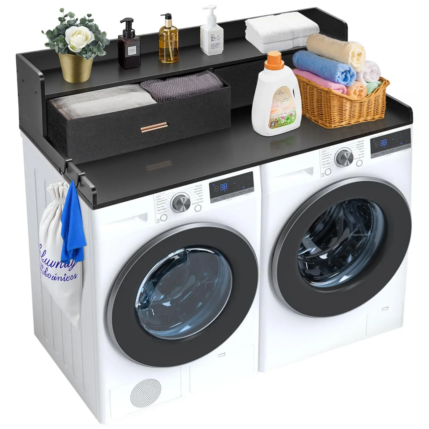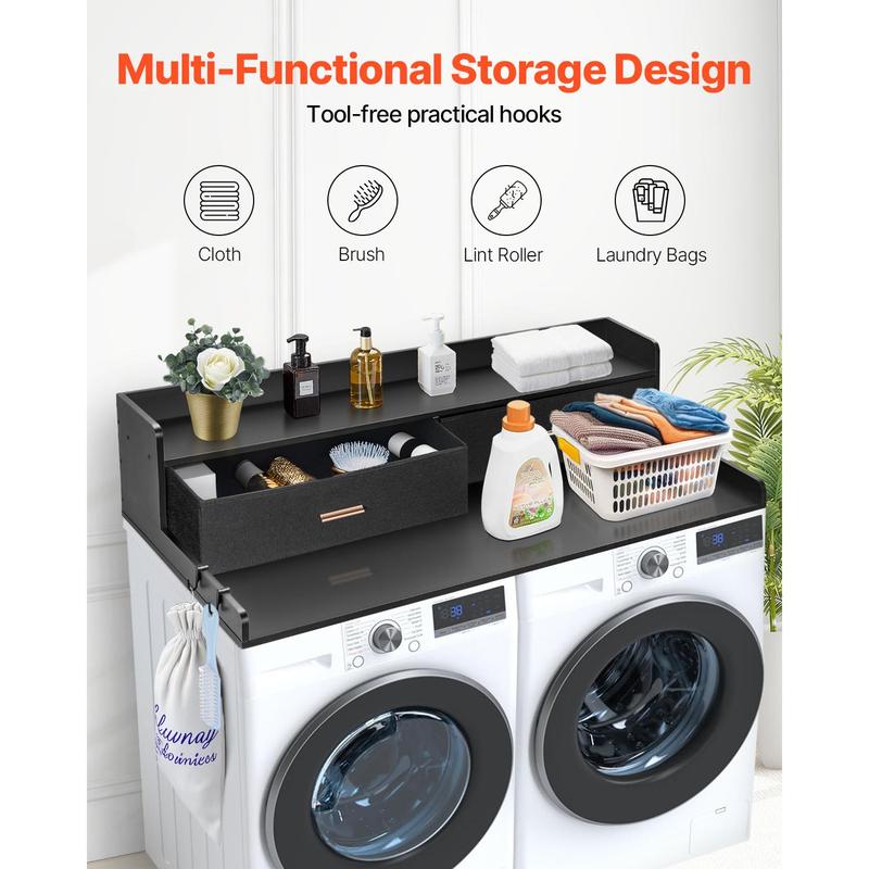 • Practical Storage Drawers: Equipped with two practical drawers, this washer dryer countertop makes it easy to store items like socks, clips, clotheslines and other small essentials. Everything is within reach, keeping your laundry area neat and efficient.