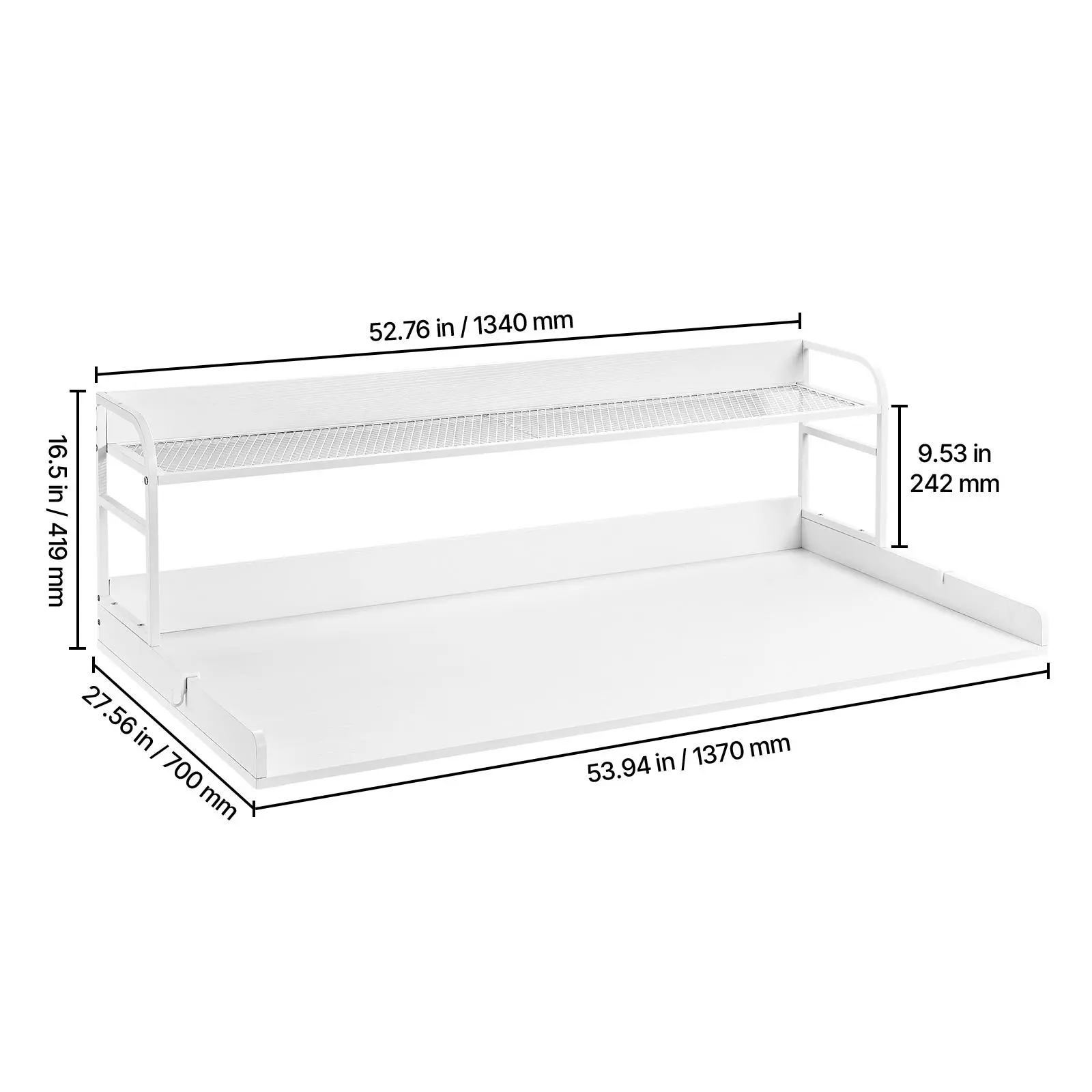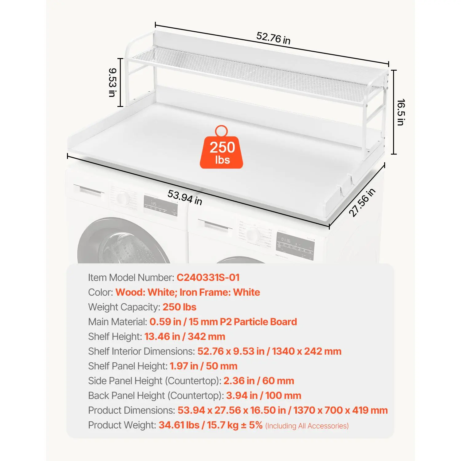 VEVOR Washer Dryer Countertop with 2-Tier Shelf,  54" x 27" Wooden Washer and Dryer Countertop with Anti-Slip Pads, Water-Resistant Laundry Topper Cover for Laundry Room Organization and Storage, White