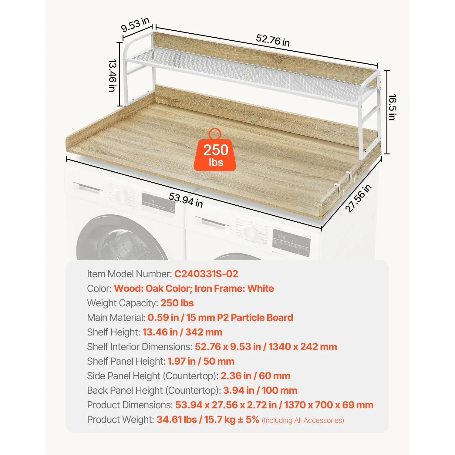 • High Quality: Made from durable, friendly P2 CARB board, this washer and dryer countertop is heat-resistant, rust-resistant, water-resistant, and easy to clean. With a weight capacity of up to 250 lbs, it’s a reliable choice for your laundry room.
