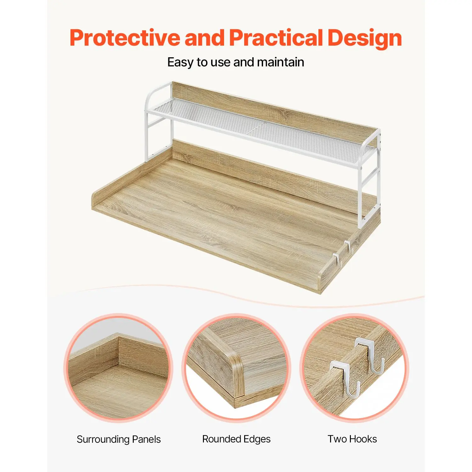 • Multifunctional Hook: This washer dryer countertop features side hooks, perfect for hanging everyday items like cloths, lint rollers, and more. Convenient to access and keeps everything organized, ensuring a clean and tidy look.