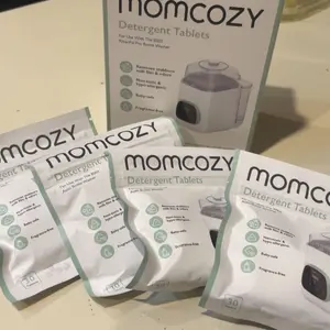 These tablets are excellent in the momcozy bottle washer. We run our washer with 1 tab per wash at least once a day if not more!