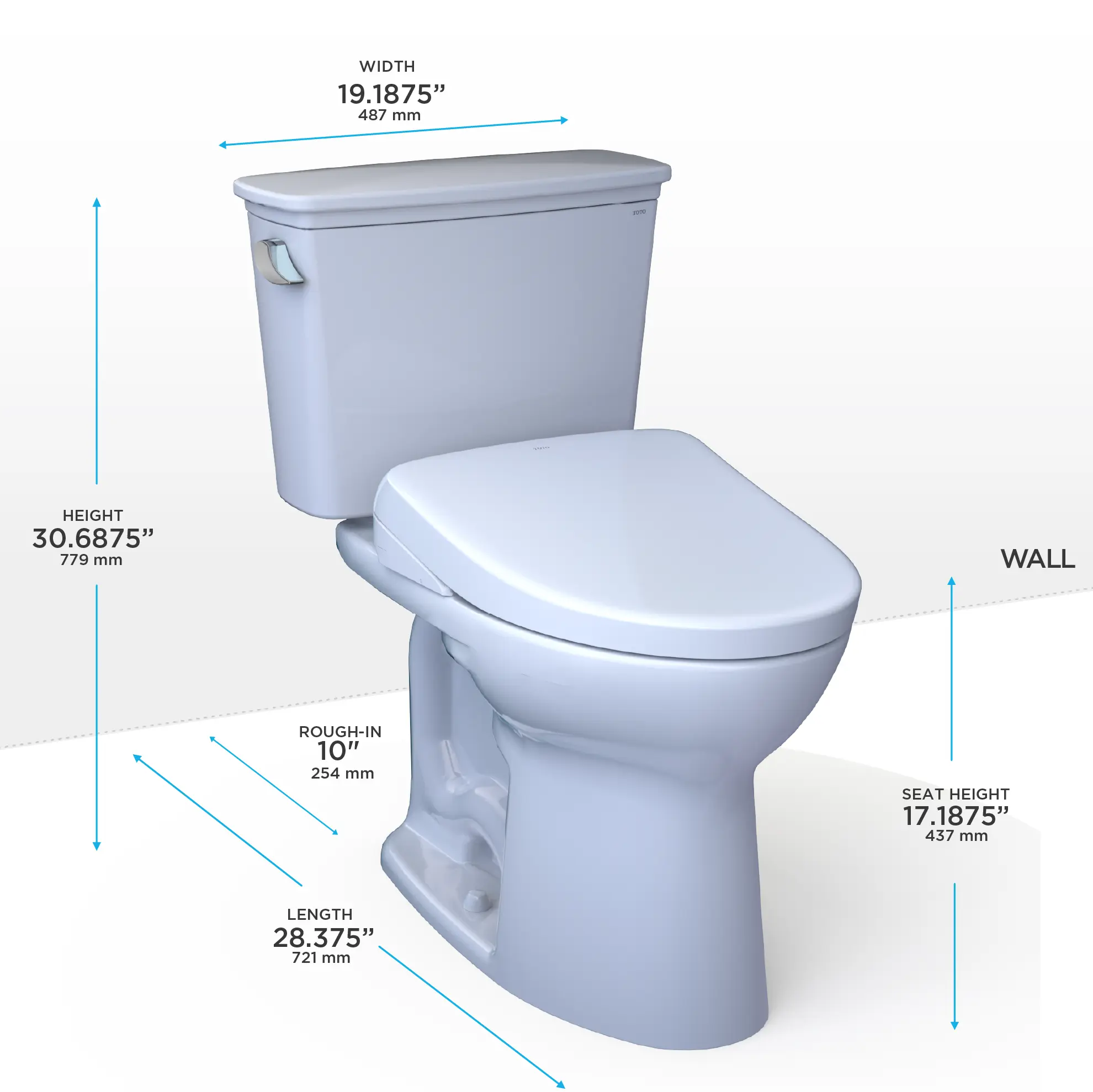 - Elongated front bowl and WASHLET+ S7 and tank set