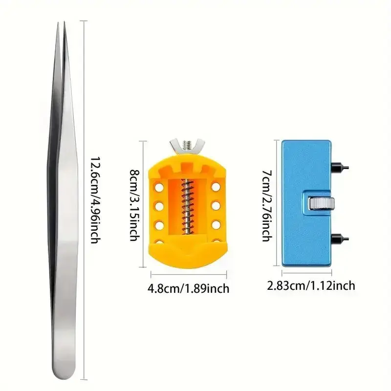 【Convenient Tools】: This kit includes essential tools like a watch wrench back remover and tweezers, ensuring effortless watch maintenance. 【Precision Opener】: Designed for rotating open watch covers, our case opener provides a secure fit, preventing damage during repairs. 【Complete Set】: With three key components, this watch repair kit equips you with everything needed for effective watch servicing. 【Durable Material】: Each tool is crafted from high-quality materials that ensure longevity and reliability for numerous repairs. 【User-Friendly】: The ergonomic design of the tools allows for comfortable handling and controlled operation for all skill levels.