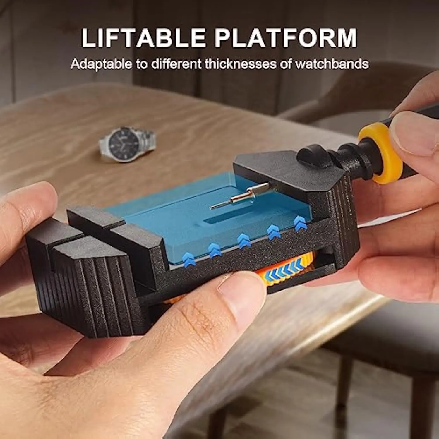 ·【Liftable platform】The liftable platform is designed for better alignment of the punch pin and the watch link pin hole, helping you to complete the adjustment of the strap more efficiently.