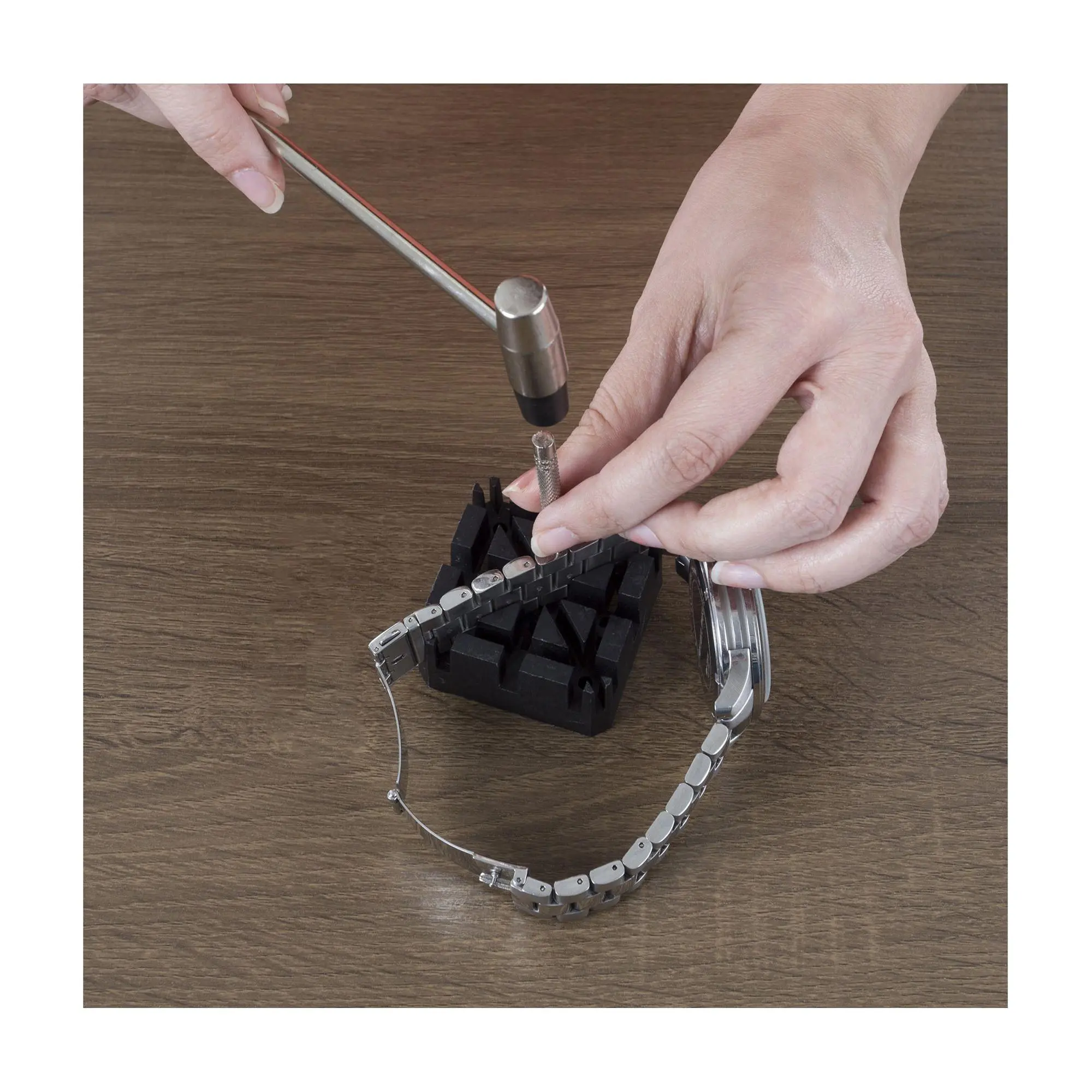 ·Includes spring bar remover, long nose pliers, mini screwdriver, three pin punches, holder block, Philips screwdriver, case wrench, watch hammer, fine point tweezers, three flathead screwdrivers, pin remover, and case knife