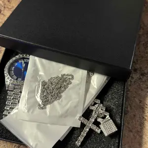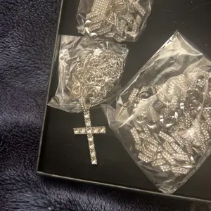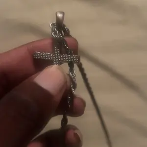 Very light and cheap feeling also very small the bracelet does not fit my wrist and I’m normal sized and the cross chain is also super small