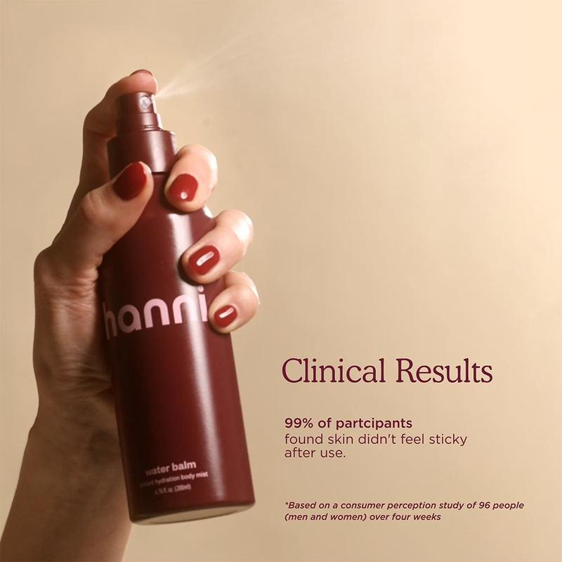 Water balm is a weightless mist that replaces your lotion, feels as light as water on your skin and leaves zero residue behind.
