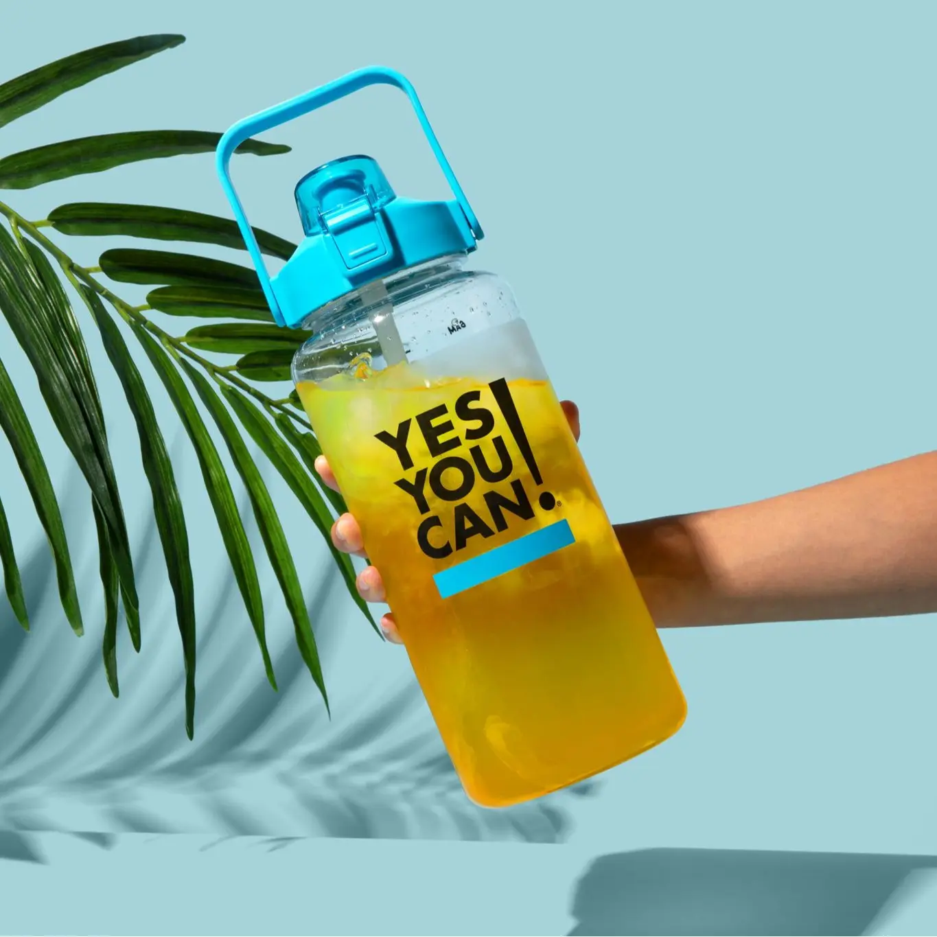 Motivational Water Bottle - Portable, Reusable, Gallon Plastic Container with Blue Lid, Ideal for Everyday Use