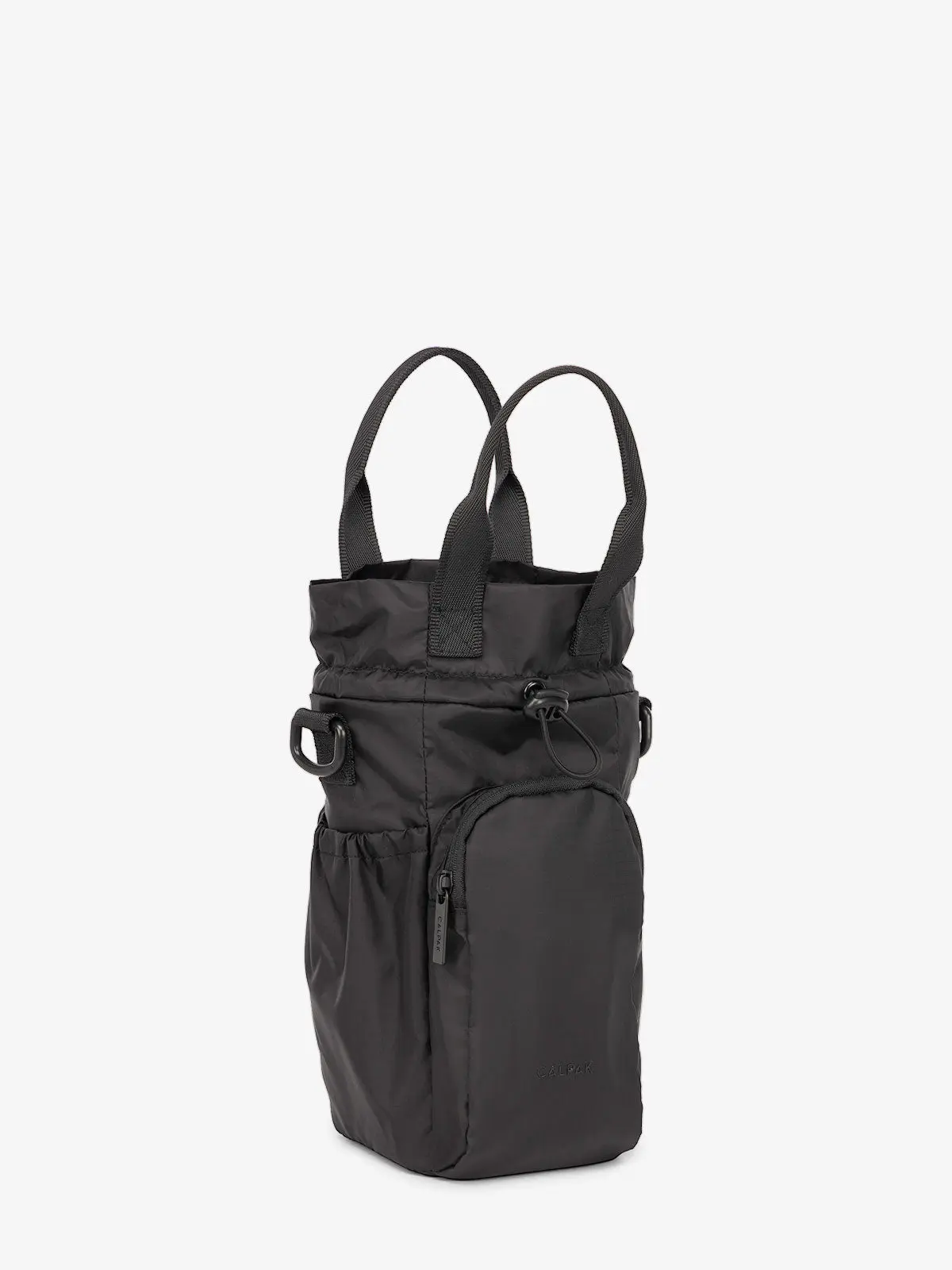 I ordered the Water Bottle Holder in black, and the color is the same as the image shown on the CALPAK website. I like to use this Water Bottle Holder when I go out on walks. My favorite feature from this product is the number of pockets. The sides and the back of the bag have open pockets with elasticized rims, and the front of the bag has a zippered pocket. In total, there are four pockets. For size references, this zippered front pocket can fit an iPhone 17 Pro or an iPhone 17 Pro Max. As for the holder’s main compartment, it is roomy enough for a standard plastic bottle that contains 16. 9 fluid ounces. If needed, two can possibly be squished into the bag, which means the Water Bottle Holder can accommodate bigger containers. The interior of the main compartment is made with the fabric you might see in lunch boxes to keep a bottle or another object cold or hot. Overall, I am happy with my purchase.