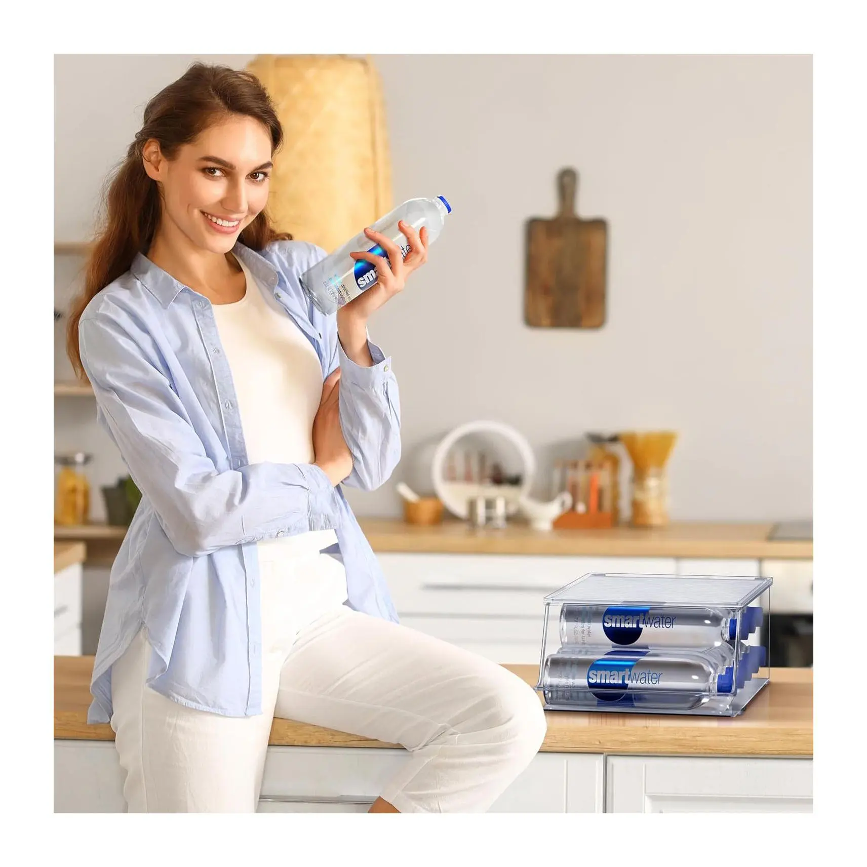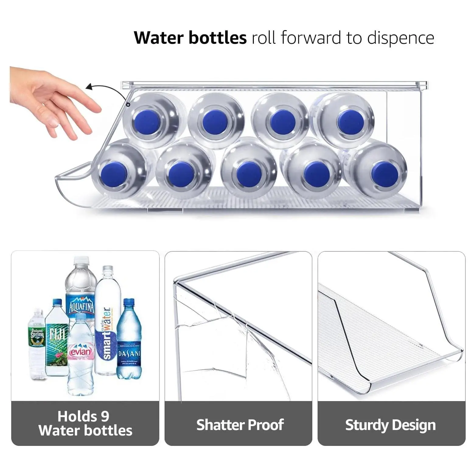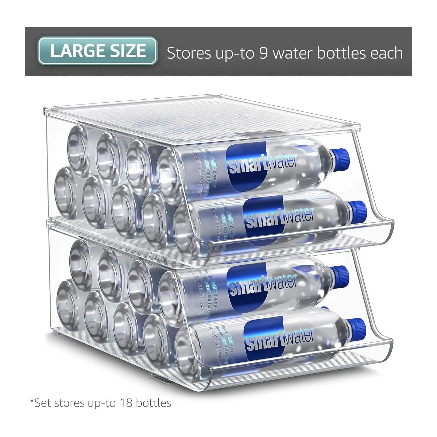 Keep your fridge neat and organized with the Sorbus water bottle organizer and dispenser. This set of two stackable holders can store up to 10 water bottles, making it easy to keep your beverages accessible and clutter-free. The clear design allows you to quickly see what's inside, while the rotating system ensures the next bottle is always within reach. From Sorbus.