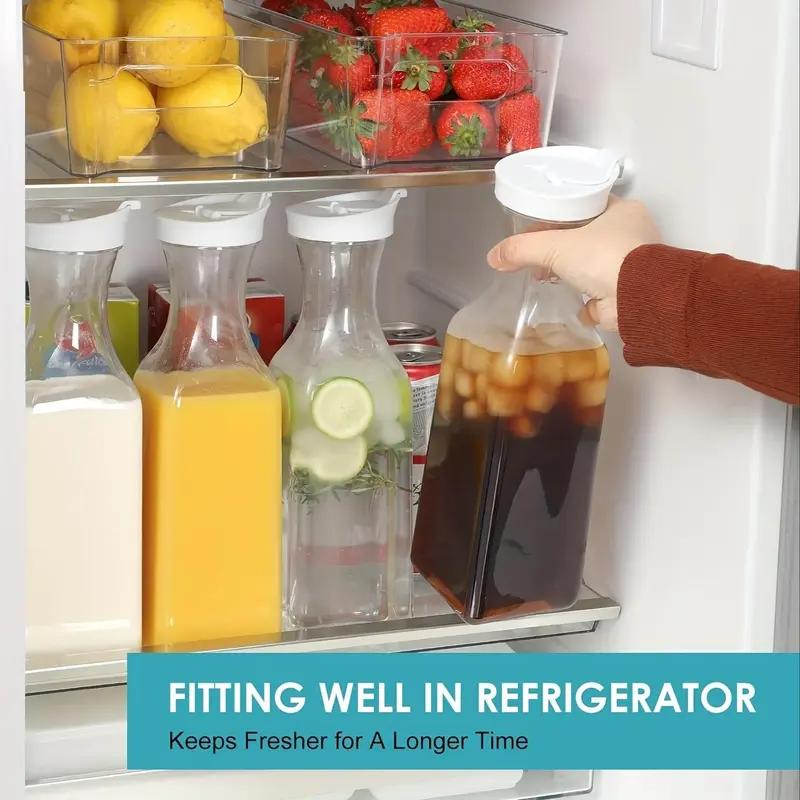 Silicone Flip Lid: The silicone flip lid on our refrigerator juice containers with lids creates an airtight seal, preventing leaks and keeping your drinks fresh. Our easy-pour jugs are perfect for coffee, creamer, milk, or wine.