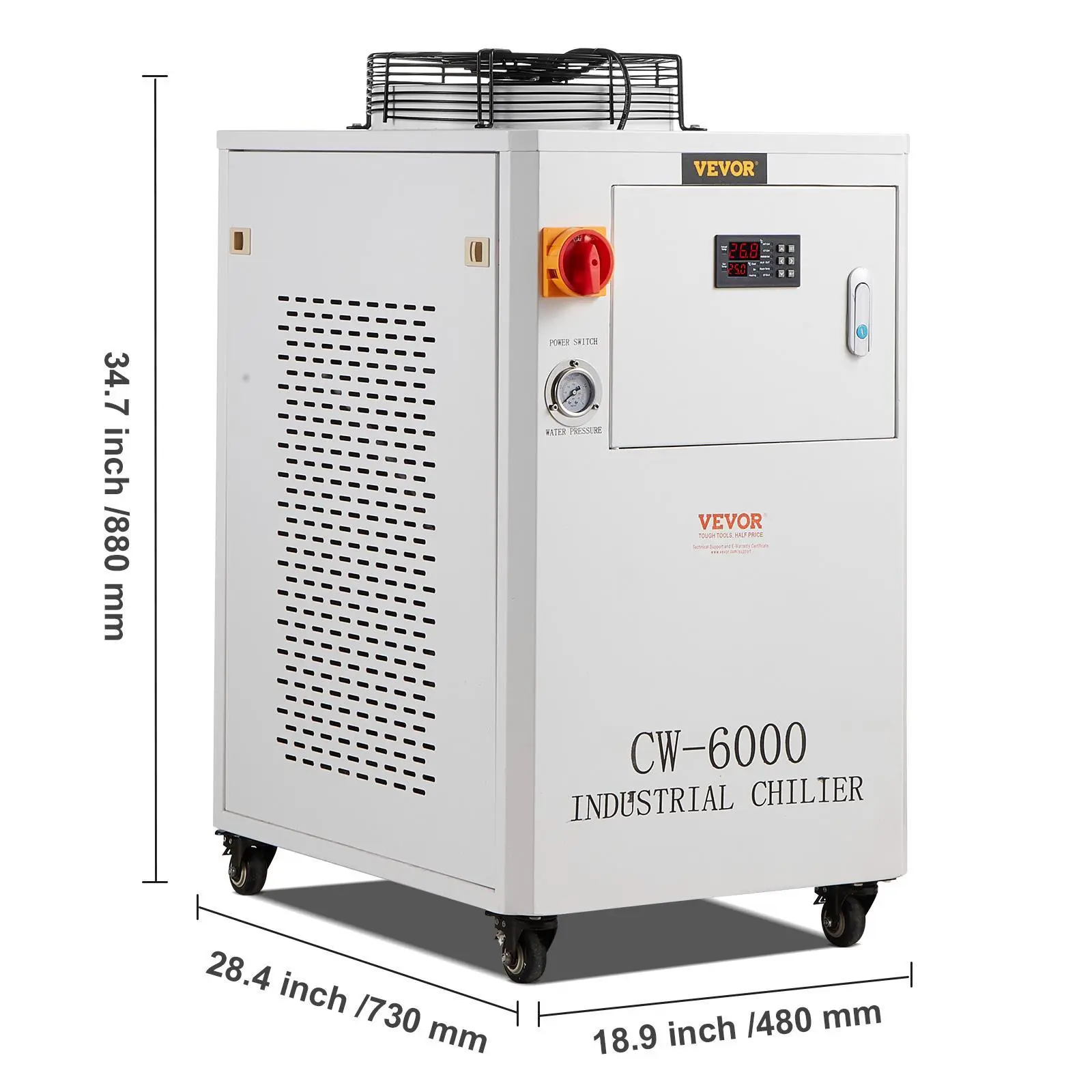 5. VEVOR Industrial Water Chiller, TikTokShopBlackFriday, CW6000, 1500W Industrial Water Cooler Cooling System with Compressor 15L Water Tank Capacity 65 L/min Max Flow Rate, for CO2 Laser Engraving Machine Cooling Machine