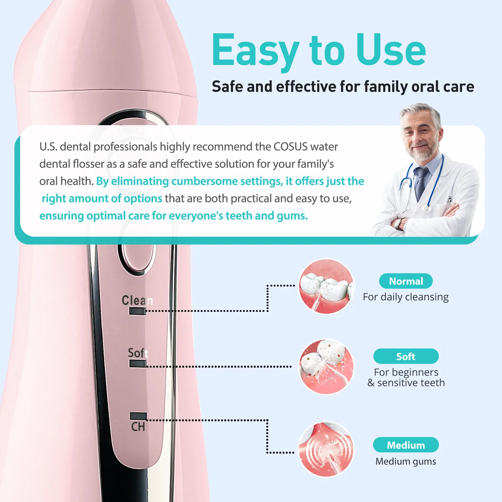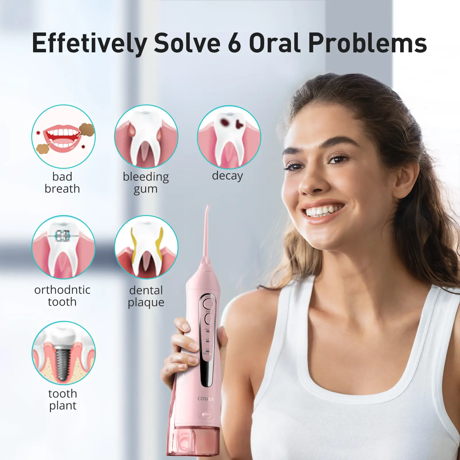 The Coslus CX20 Water Flosser equipped with multiple cleaning modes and pressure settings, it can be freely adjusted according to individual oral conditions. Whether for sensitive gums, orthodontic care, or daily cleaning, you can find a gentle and effective solution tailored just for you.