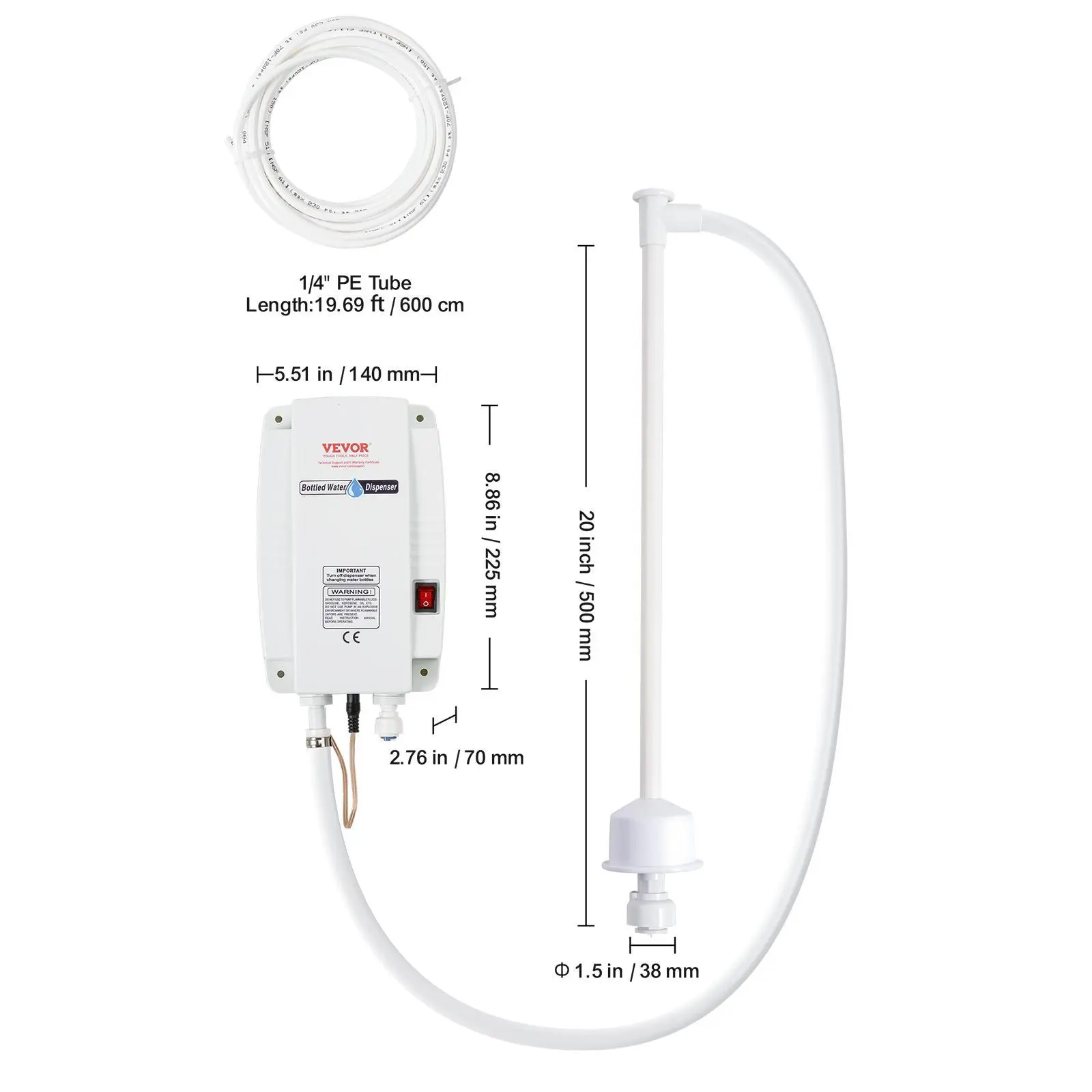 • Wide Voltage, Broad Compatibility: This bottled water dispenser pump system utilizes a wide voltage single-tube bottled water pump system, suitable for 5-gallon bottled water, delivering pure drinking water under pressure. It comes with 1 inlet pipe and a 100-240V adapter. The wide voltage design eliminates concerns about voltage mismatch, allowing easy adaptation to various usage scenarios.