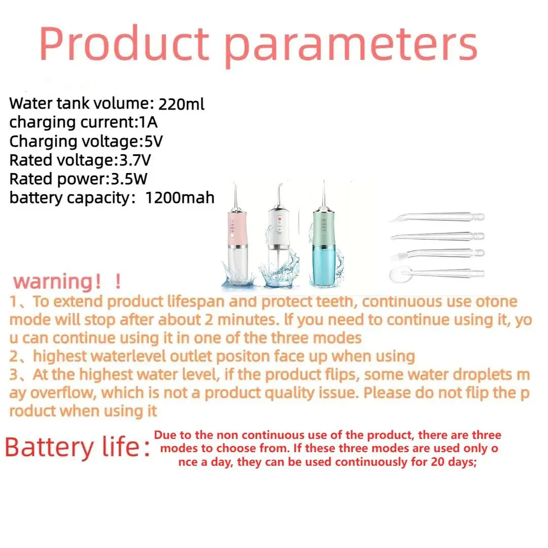 【Long Battery Life】: A powerful 1200mAh battery ensures the water flosser can last for extended periods, providing consistent oral care without frequent recharges.