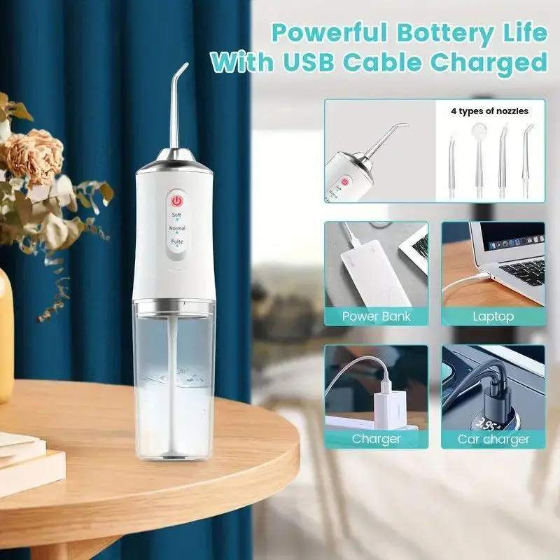 【Portable Convenience】: A compact, cordless design and USB charging capability make this water flosser perfect for both home and travel use.
