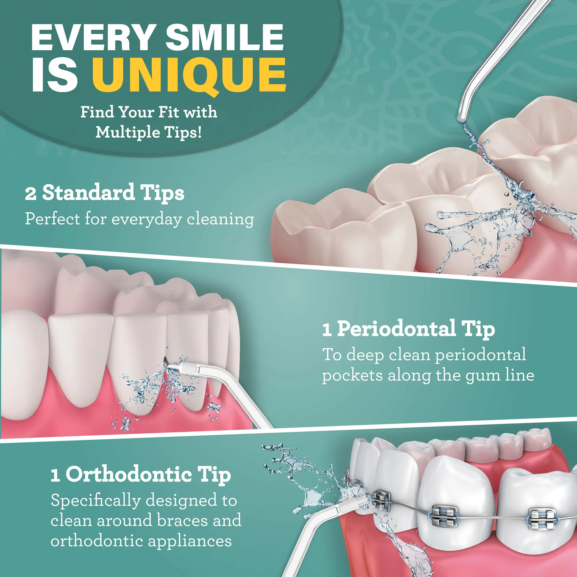 Great quality water floss are for the price. It comes with a few extra attachments with which I appreciate.