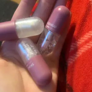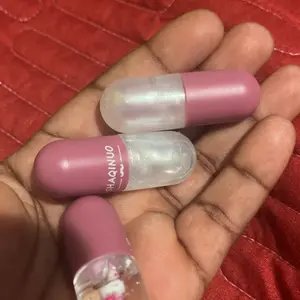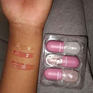 Super small and cute. Two of them change color to a really cute pink shade. Very smooth and moisturizing. It’s not sticky at all and very shiny. The glitter once on the lips isn’t that noticeable but it adds a bit of extra shine.